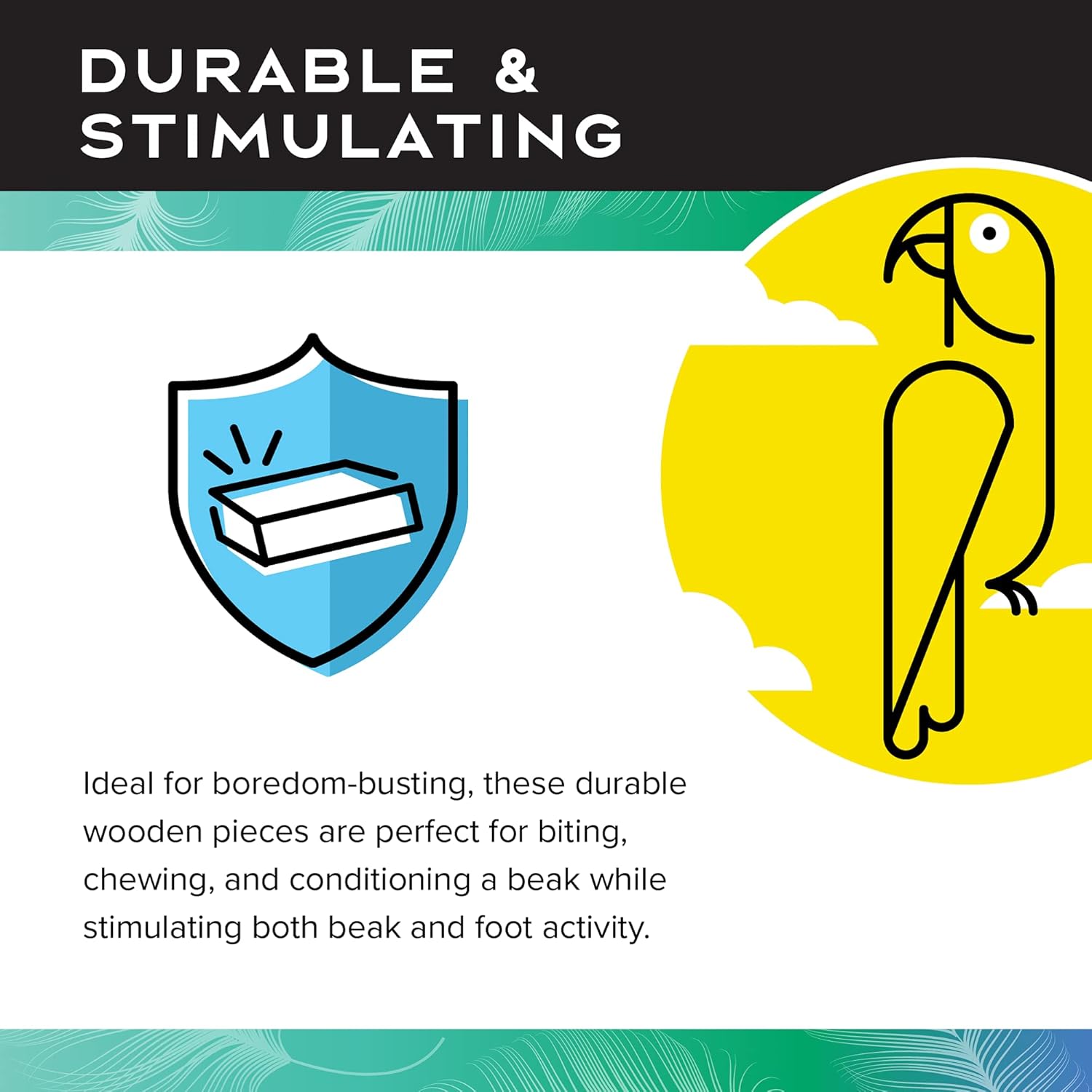 • STIMULATING: Ideal for boredom busting, wooden pieces of these large bird toys are great for biting, chewing, and conditioning a beak while stimulating both beak and foot activity