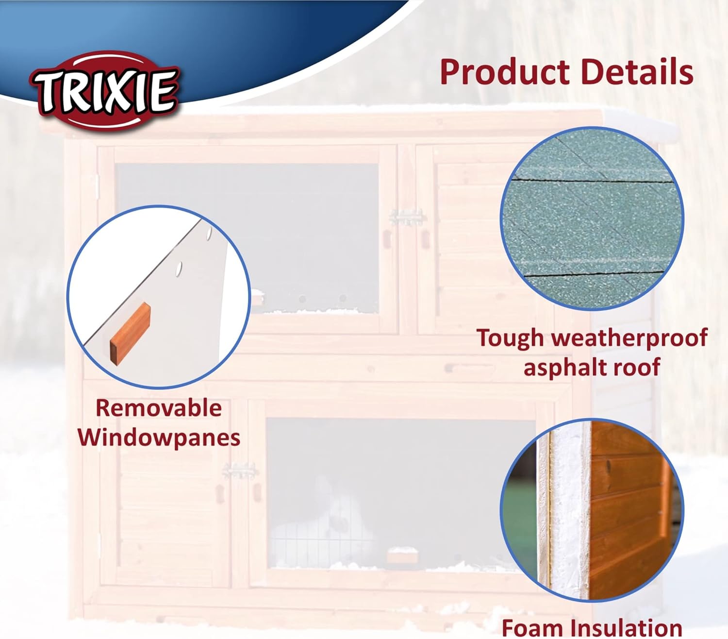TRIXIE natura Insulated Rabbit Hutch, 2-Story Outdoor Bunny House, Small Animal Hutch with Ramp, Removable Window Panes, Ideal Shelter for Rabbits or Guinea Pigs, Brown