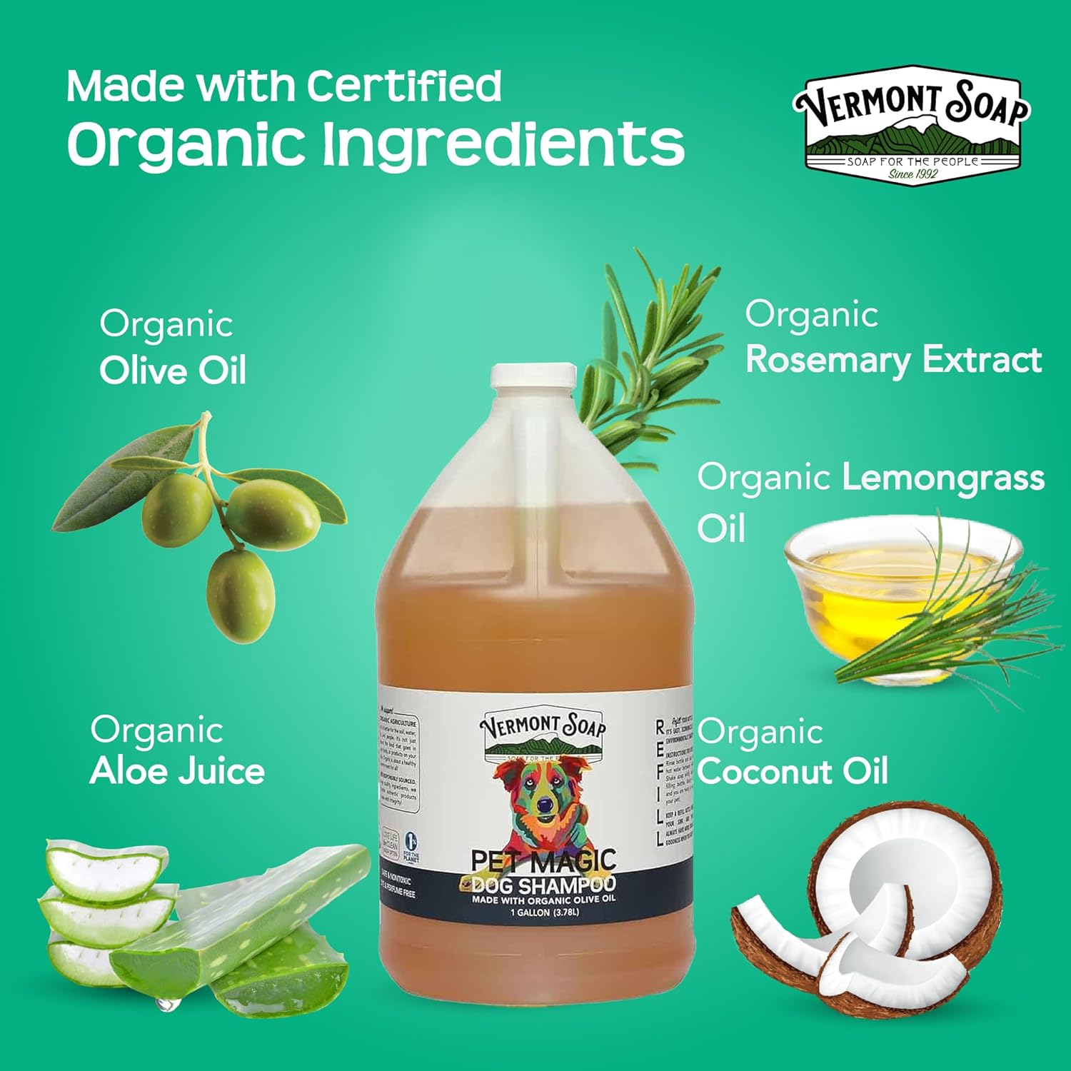 Vermont Soap Organics Pet Shampoo - Organic & Natural Olive Oil, Coconut & Aloe Vera Dog Shampoo for Sensitive Skin - USDA Certified Grooming Pet Shampoo - Original Citrus (128oz)