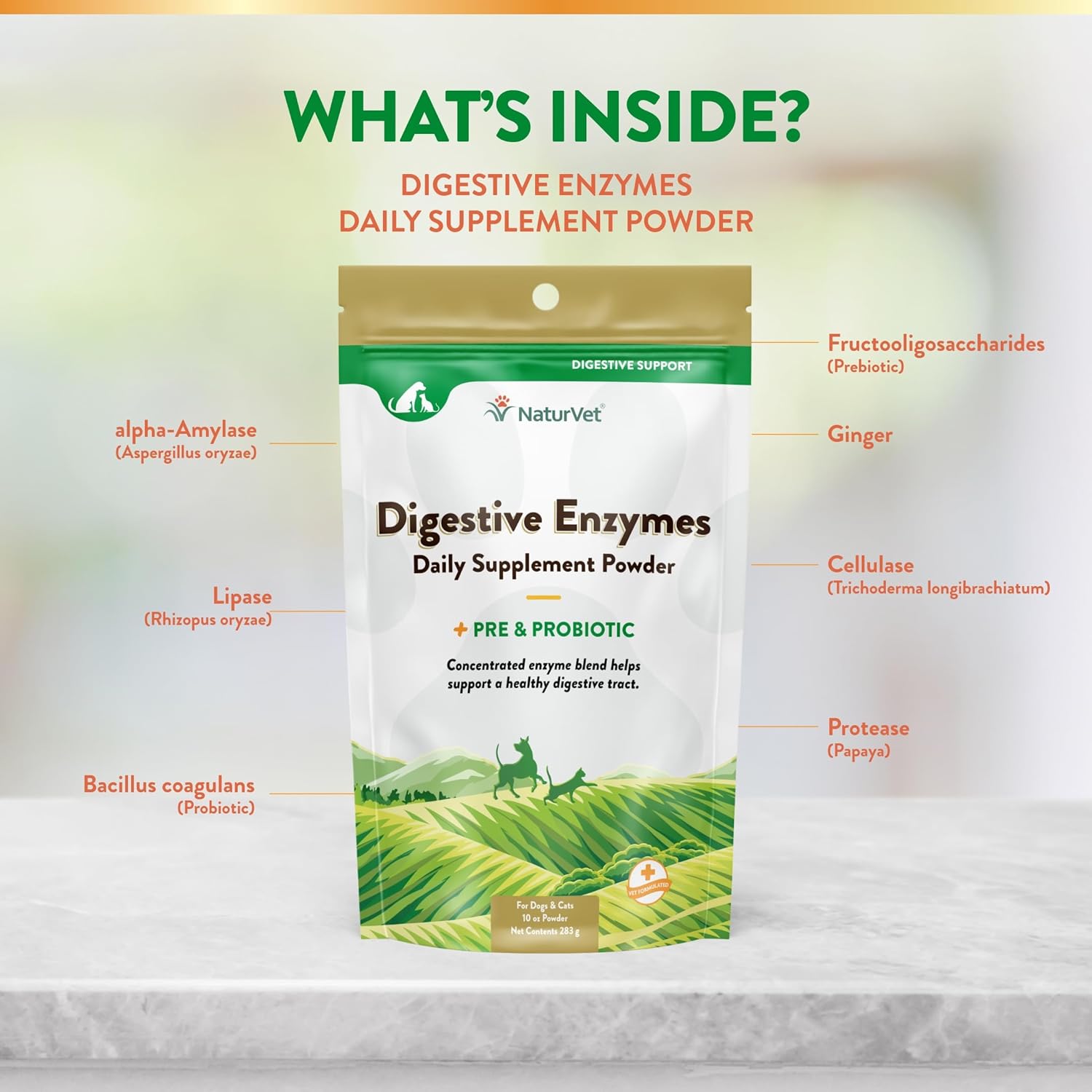 NaturVet – Digestive Enzymes - Plus Probiotics & Prebiotics – Helps Support Diet Change & A Healthy Digestive Tract – for Dogs & Cats – 10 oz Powder