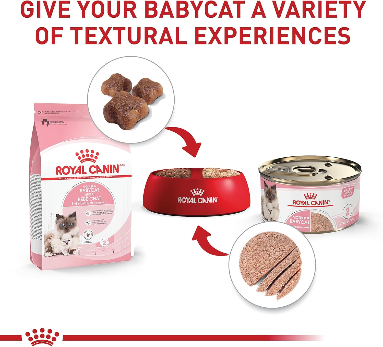 • SUPPORTS MOTHER & BABYCAT HEALTH: Royal Canin Mother & Babycat Ultra Soft Mousse in Sauce Canned Cat Food is a unique nutritional solution that supports mother cats (pregnant or nursing), and the healthy growth and development of newborn kittens (1-4 months)
