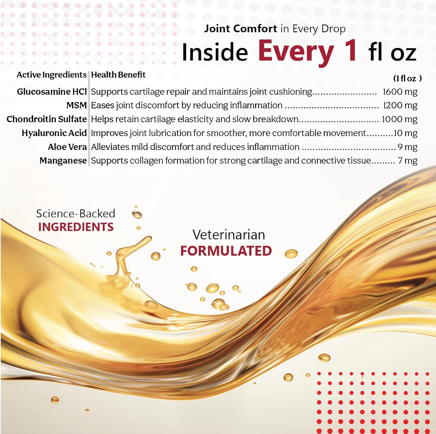 • All-in-One Joint Care: Joint MAX Liquid combines glucosamine, chondroitin, MSM, and vitamin C in one comprehensive formula, providing holistic joint care for your canine companion.