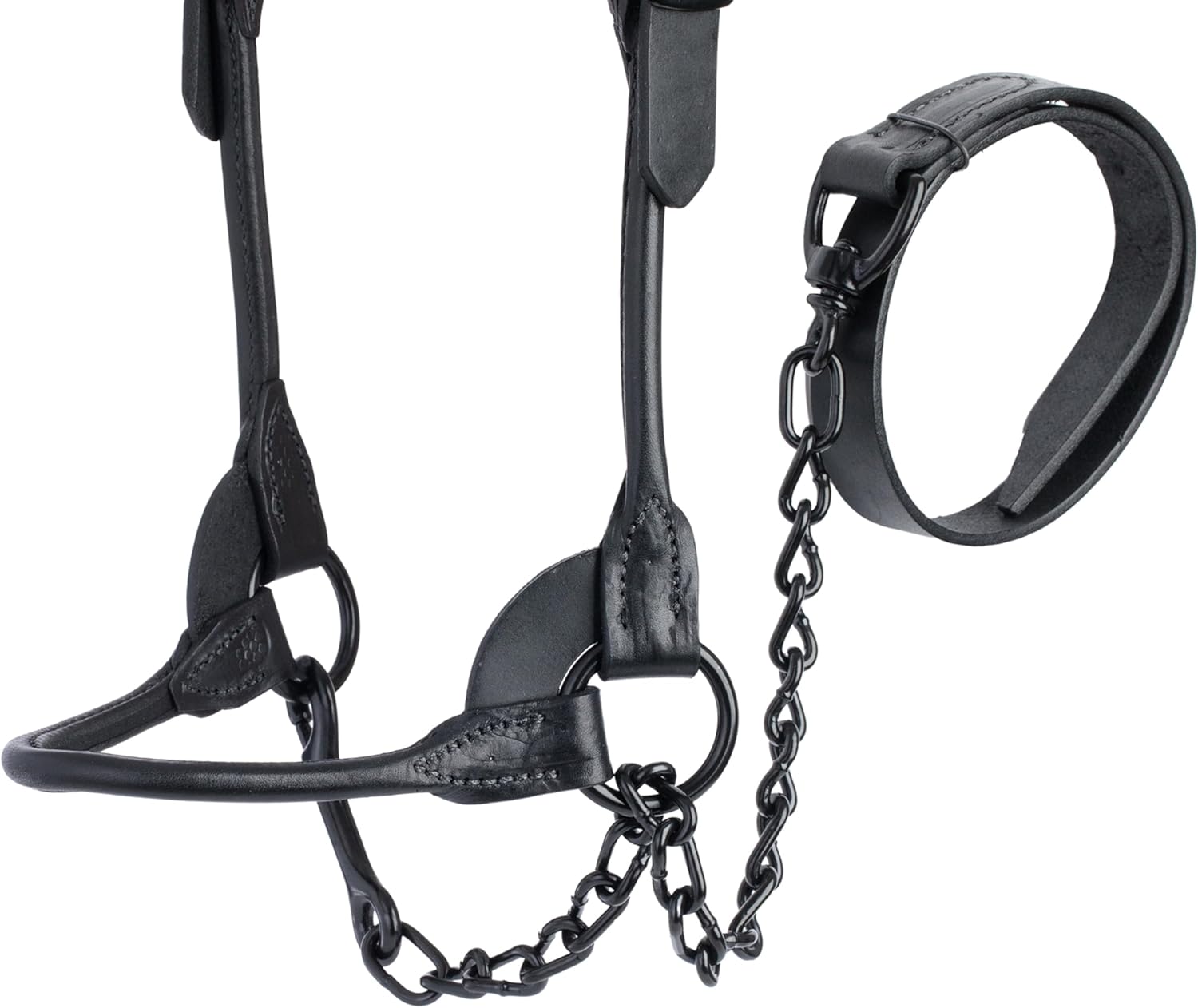 • Constructed from black bridle leather with black hardware that blends in with the animal's hair