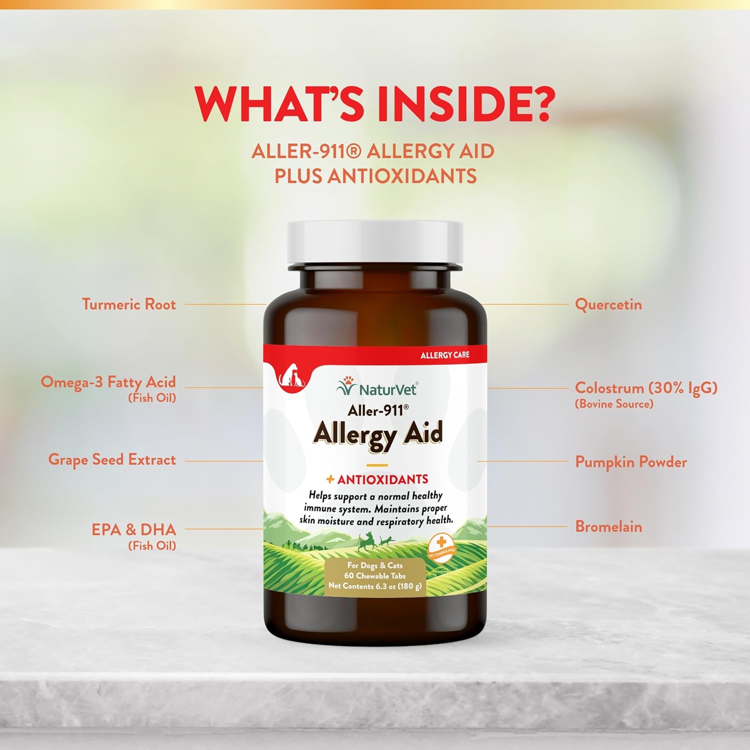 • HIGH-QUALITY ALLERGY SUPPLEMENT FOR DOGS, CATS: Help your furry friend weather the changes in season with this NaturVet Aller-011 Advanced Allergy Aid for Dogs and Cats. This pet supplement is rich in antioxidants, omegas, DHA and EPA to help boost your pet’s immune system.
