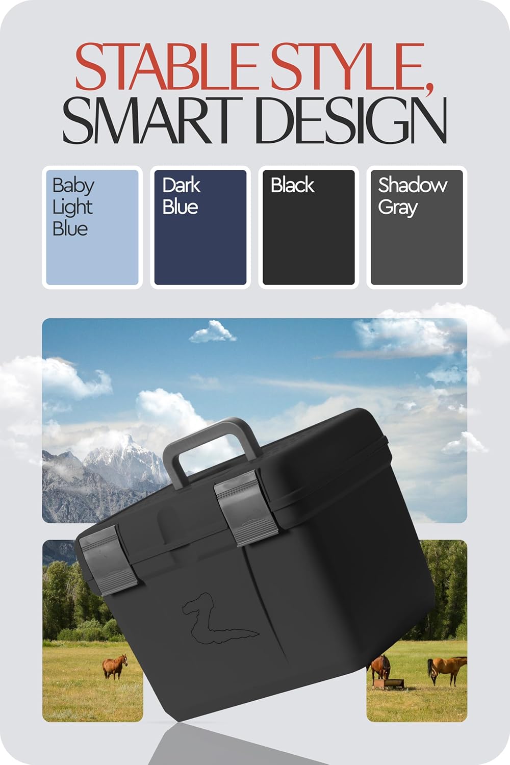 • Removable Tray Inside: Removable tray gives you more space to accommodate all the horse supplies you need. With two compartments under the tray, this sturdy box has ample room for all horse brushes, fly spray and even tendon boots.