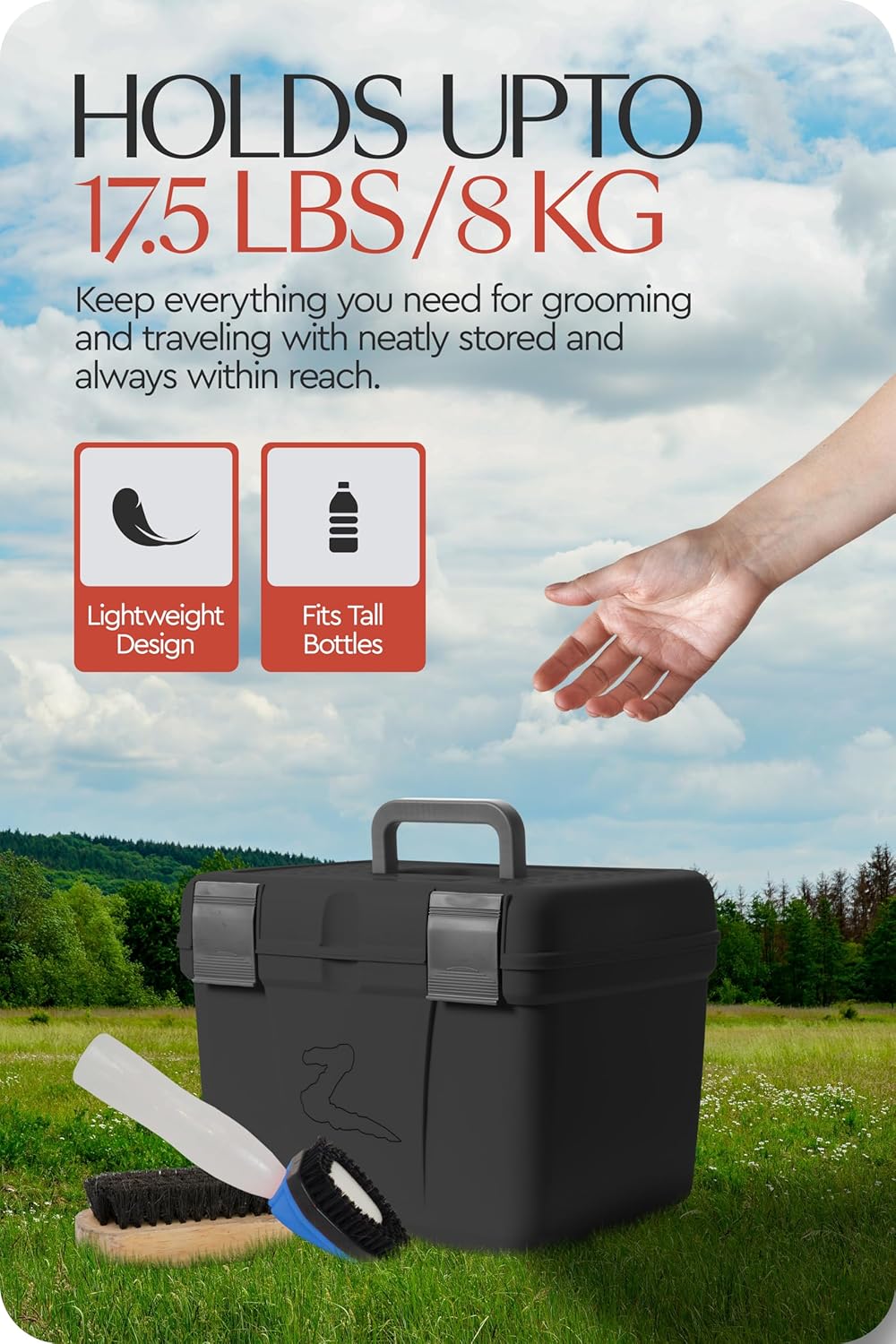• More Than Just a Grooming Box: This grooming tote box doubles as a step for when you need one. Thanks to a non-slip surface on the lid you can safely use the box as a step to help groom your horse.
