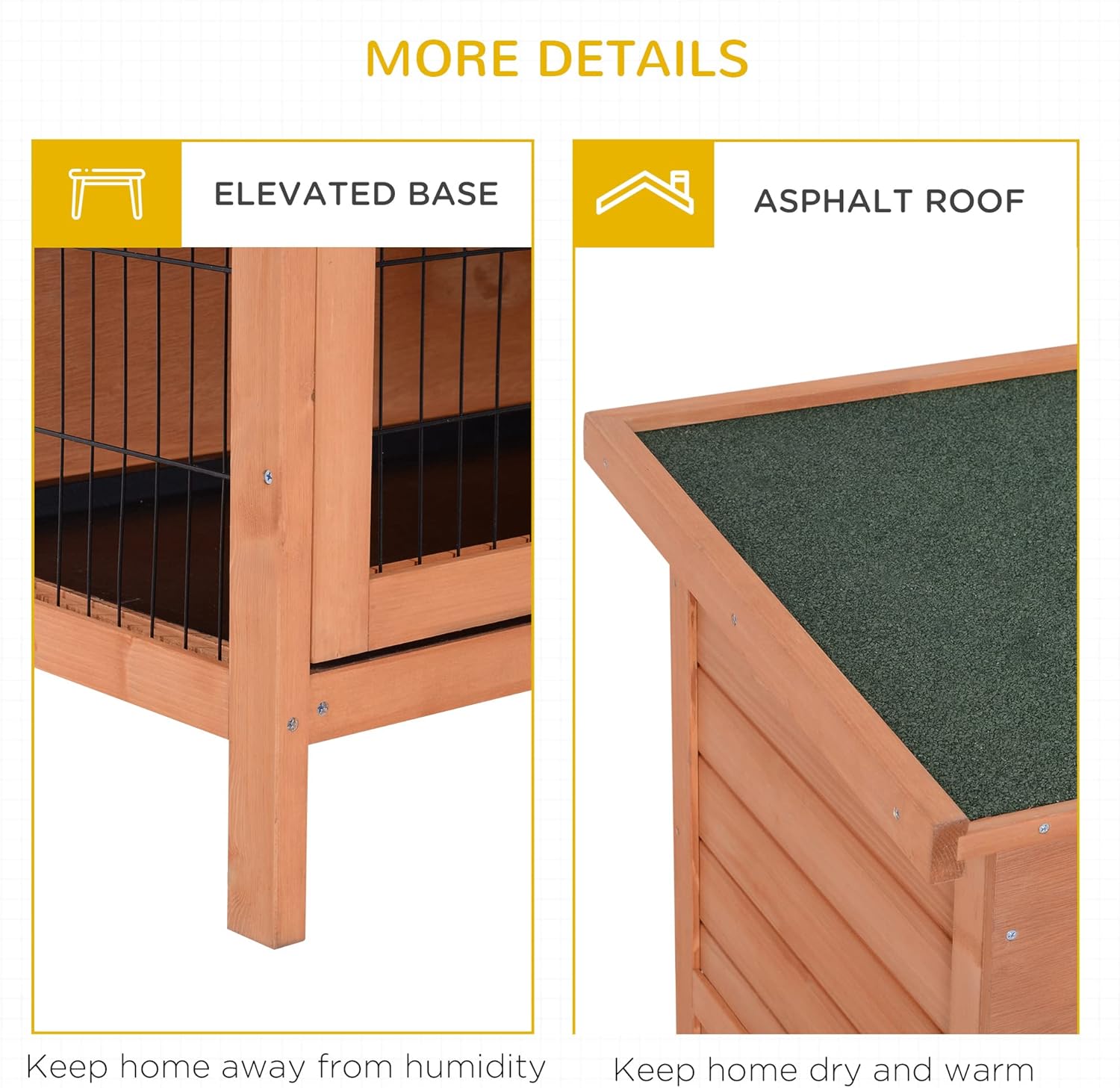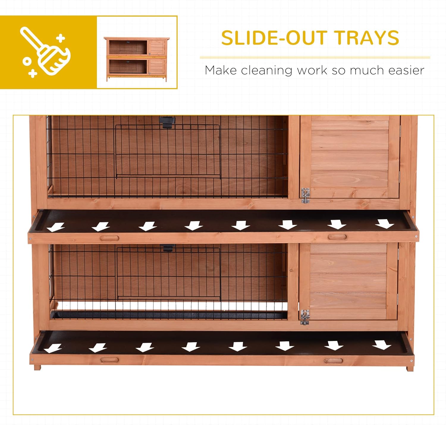 PawHut 54" 2-Story Large Rabbit Hutch Bunny Cage Wooden Pet House Small Animal Habitat with Lockable Doors, No Leak Tray and waterproof Roof for Outdoor/Indoor Orange