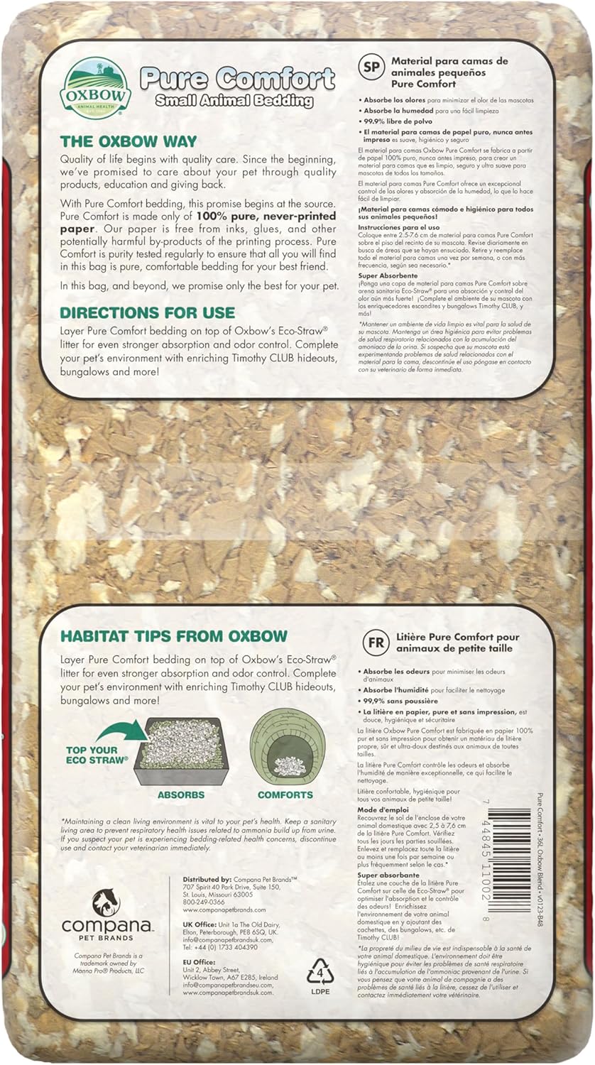 • PURE PAPER FOR SAFETY & COMFORT: Made from never-printed paper, Oxbow bedding is ultra-soft and hygienic; Perfect for rabbit litter boxes and guinea pig cages, it provides a cozy and safe habitat for your small pets