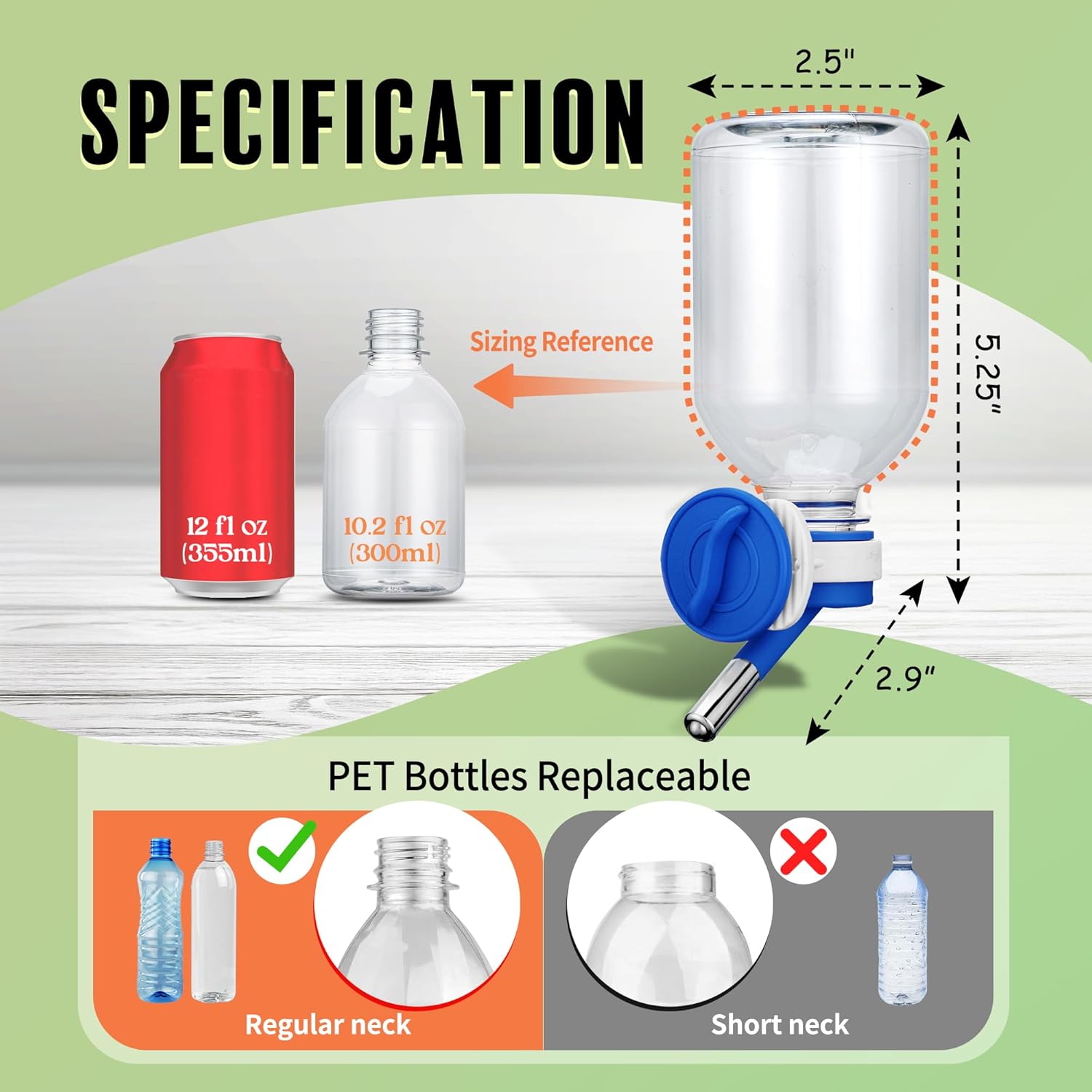 • 🐾 User-friendly Screw-on Bracket: Simple and Easy Installation. You Can Easily Snap the Water Bottle On or Off for Cleaning and Refilling Water.