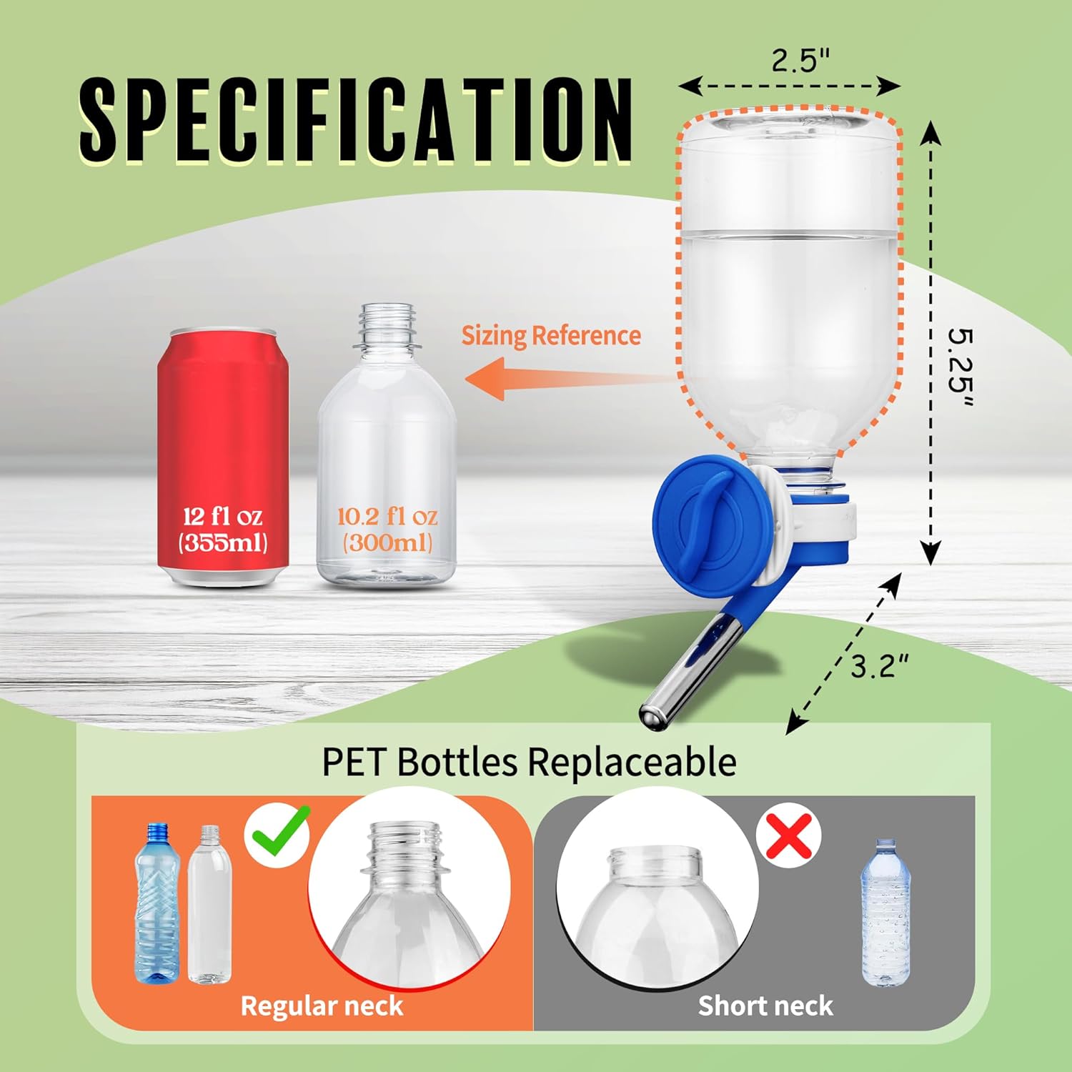 • 🐾 User-friendly Screw-on Bracket: Simple and Easy Installation. You Can Easily Snap the Water Bottle On or Off for Cleaning and Refilling Water.