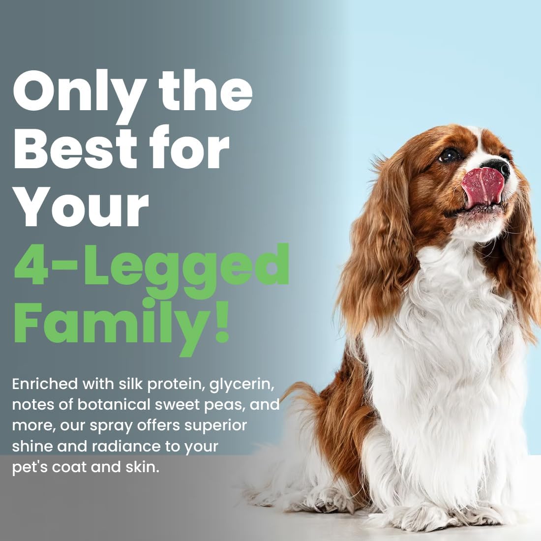 • Carefully Crafted: Enriched with essential ingredients like silk protein and glycerin along with the notes of botanical sweet peas, our pet grooming spray offers superior shine and radiance to your pet's soft coat and fur.