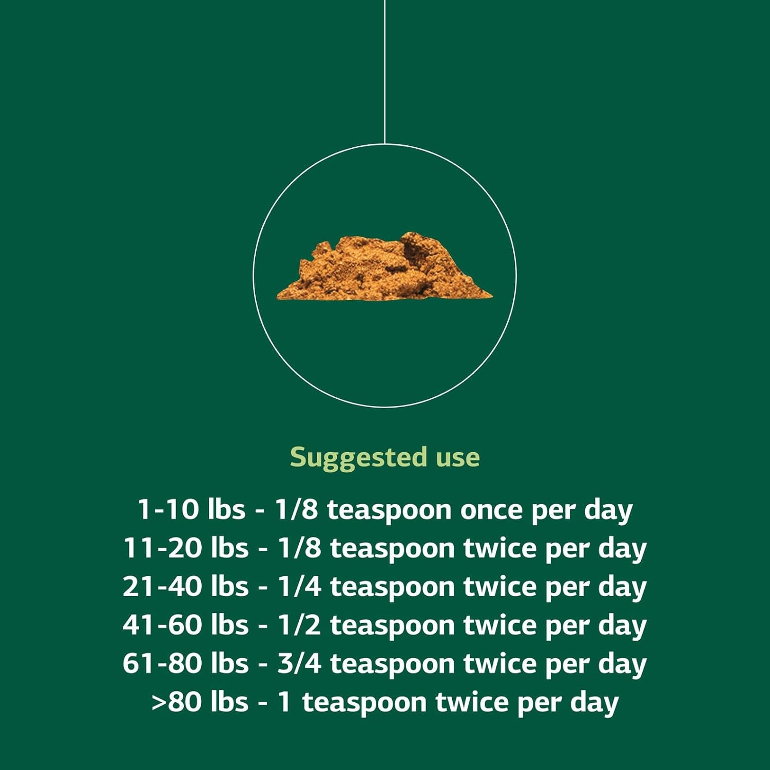 • Supplement Measurement & Dosing: Includes a 1/8 teaspoon scoop for small bottles and a 1/2 teaspoon scoop for large bottles for an accurate dosage based on your dog's weight