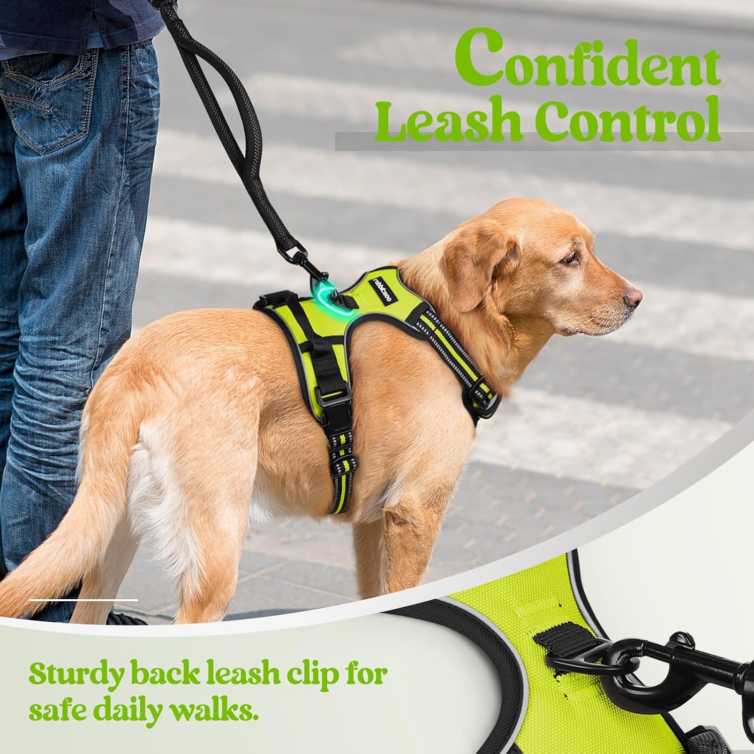 rabbitgoo Dog Harness No Pull with 2 Leash Clips, Adjustable Soft Padded, Reflective Oxford No Choke Pet Vest with Easy Control Handle for Large Dogs, Green, L