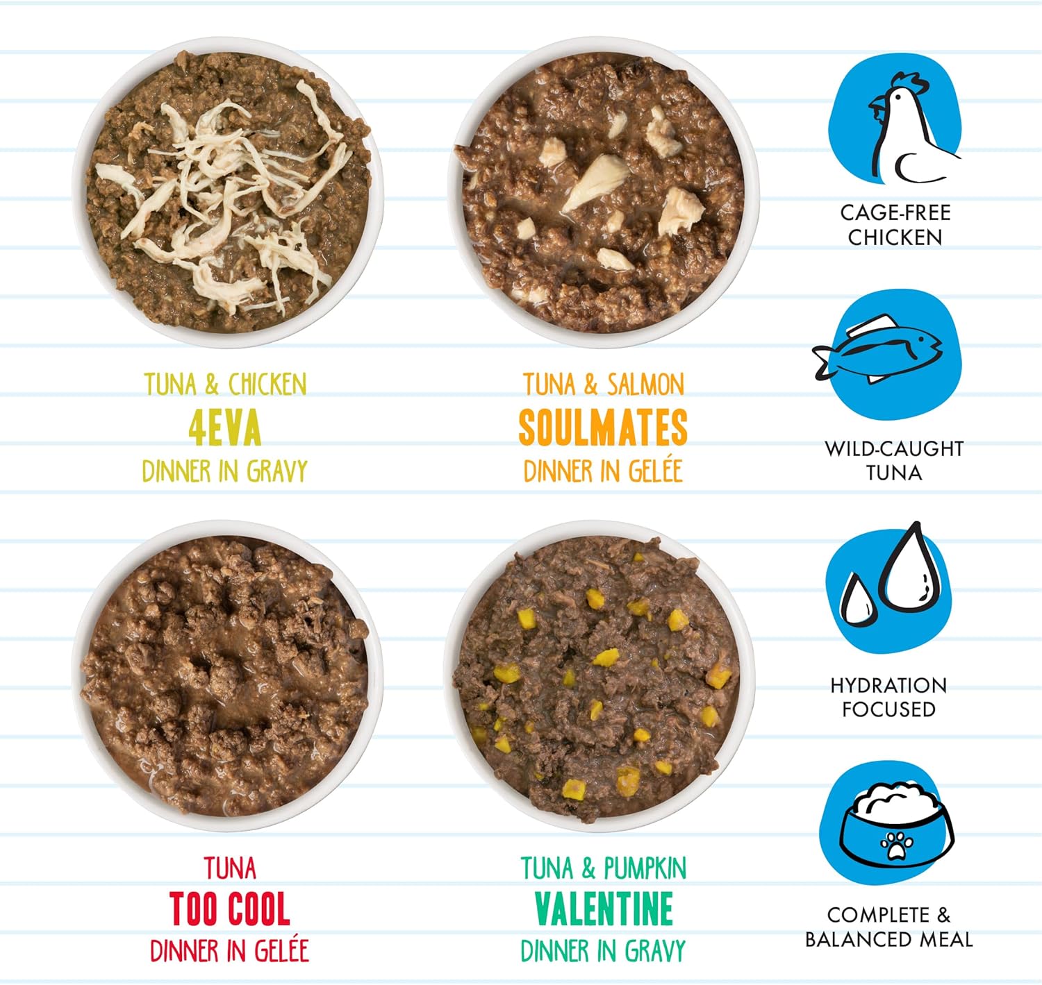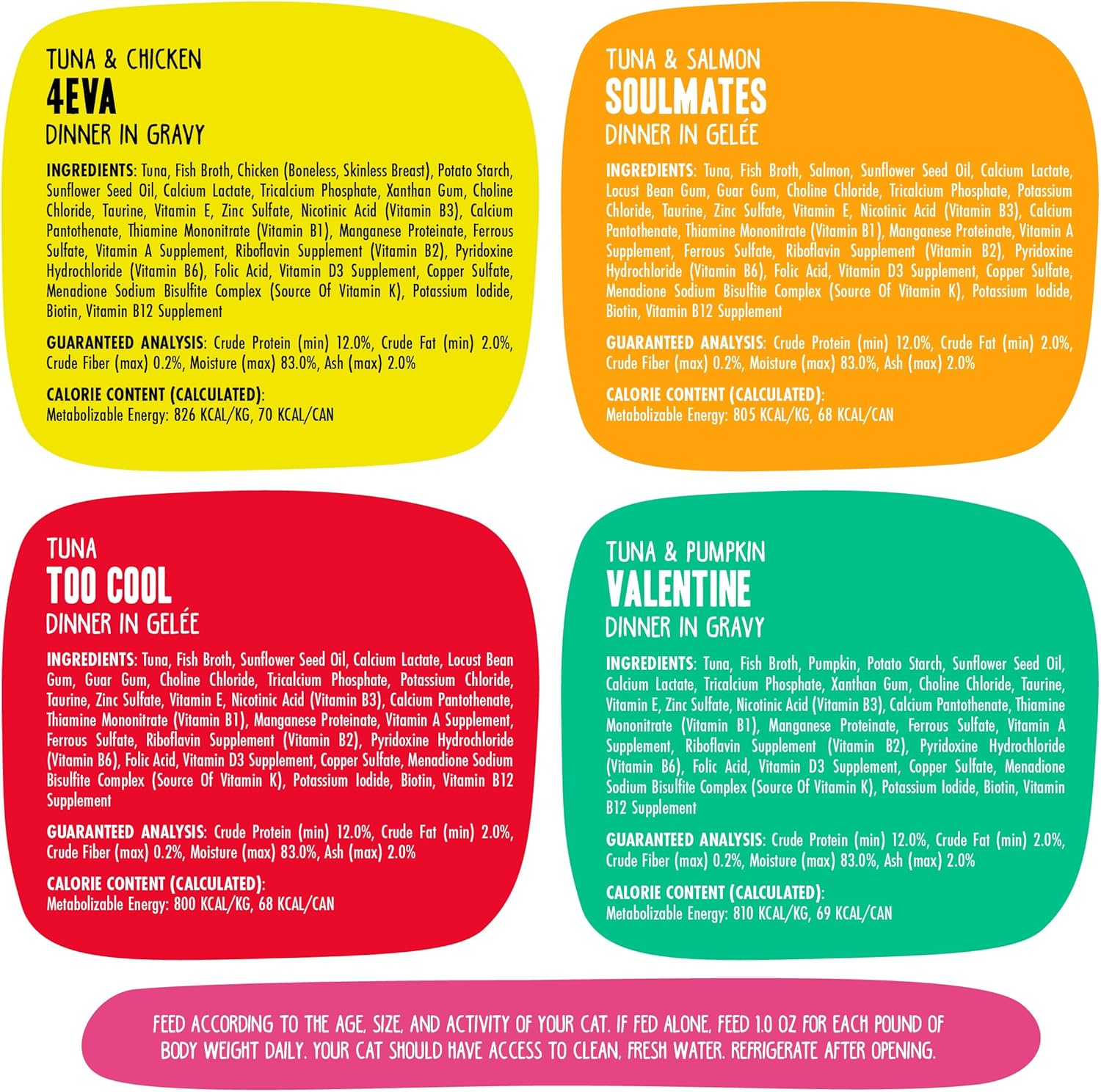 • Batch O Besties Variety Pack, Four of our most popular recipes with wild caught skipjack tuna in a delicious gravy and gelee, 3oz Can, Pack of 12