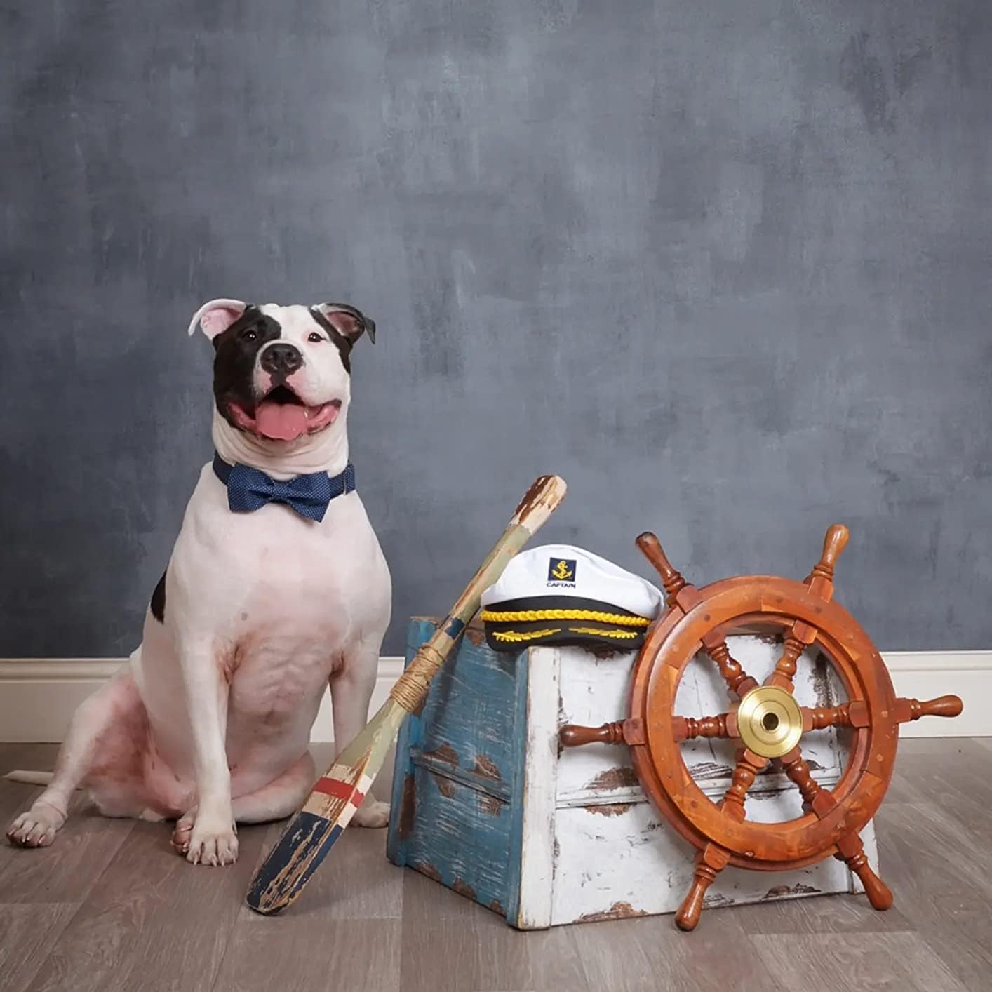 Lionet Paws Boy Dog Collar with Bowtie, Comfortable Adjustable Cute Navy Blue Bow Tie Collar for Male Dogs Gift, Medium, Neck 13.5-22 inches