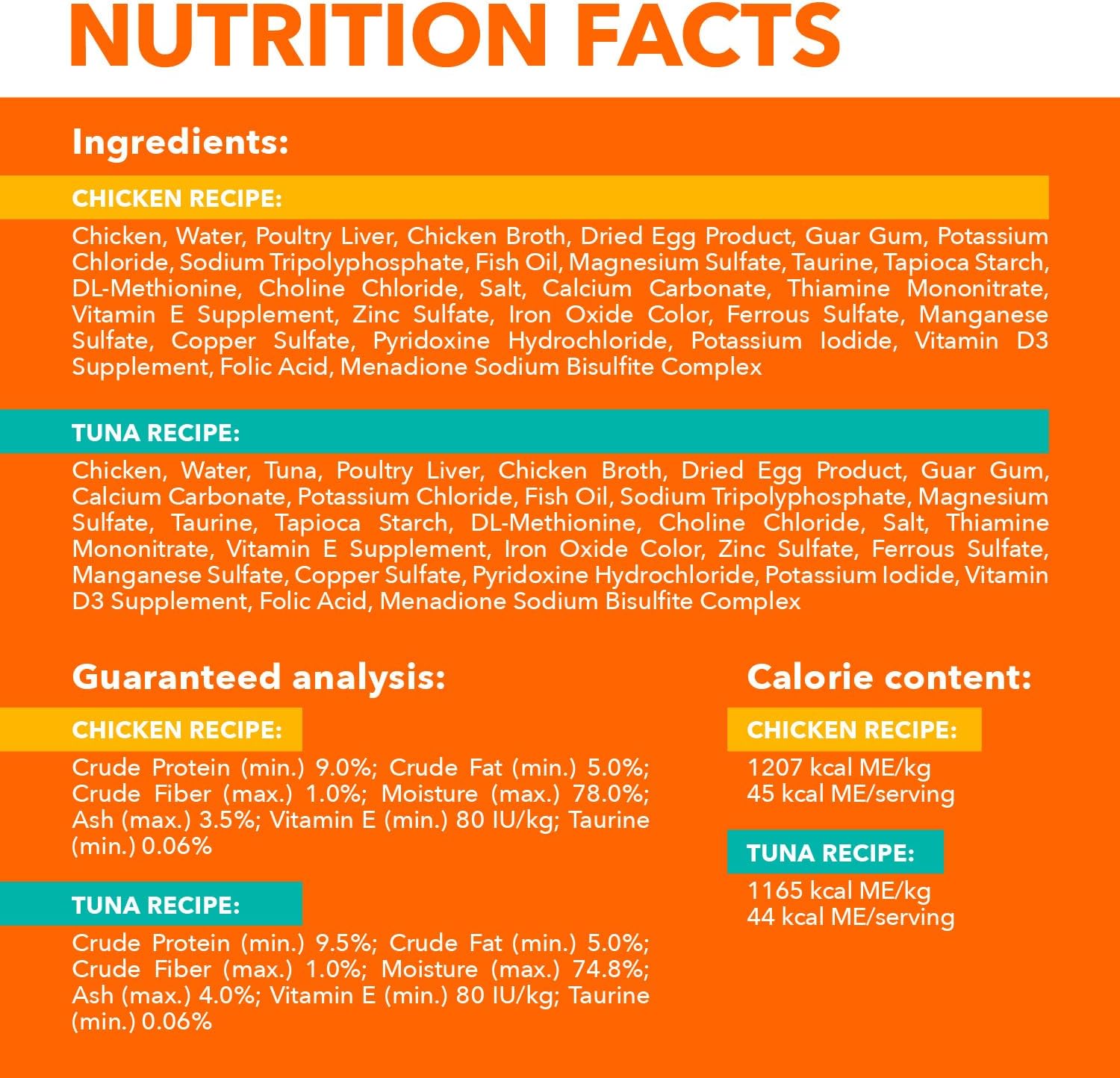 • Real Ingredients: This delicious adult wet cat food is made with real chicken or real tuna so your cat gets the protein they need