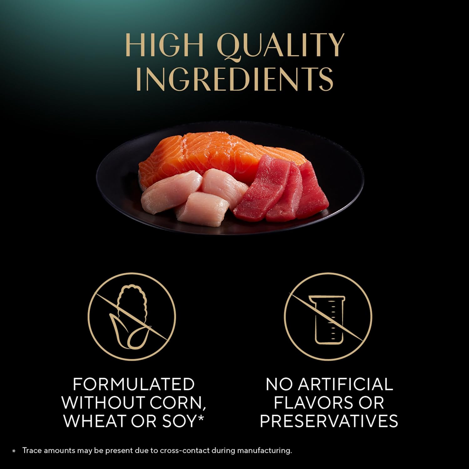 • Delicious Recipe: Sheba Perfect Portions Wet Cat Food Cuts in Gravy is formulated without grains, corn, or soy and contains no artificial flavors or preservatives; although trace amounts may be present due to cross-contact during manufacturing