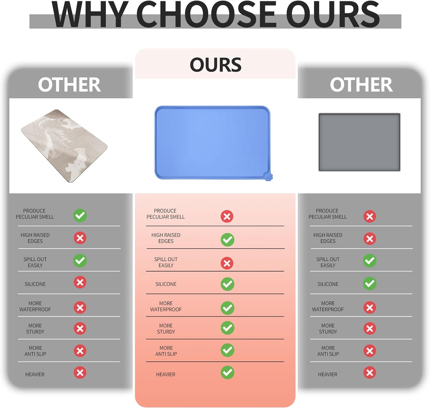 • High-raised edges: say goodbye to messy floors with our mats' high-raised edges that protect your floors from spills and splashes. Keep food and water contained and your floors mess-free