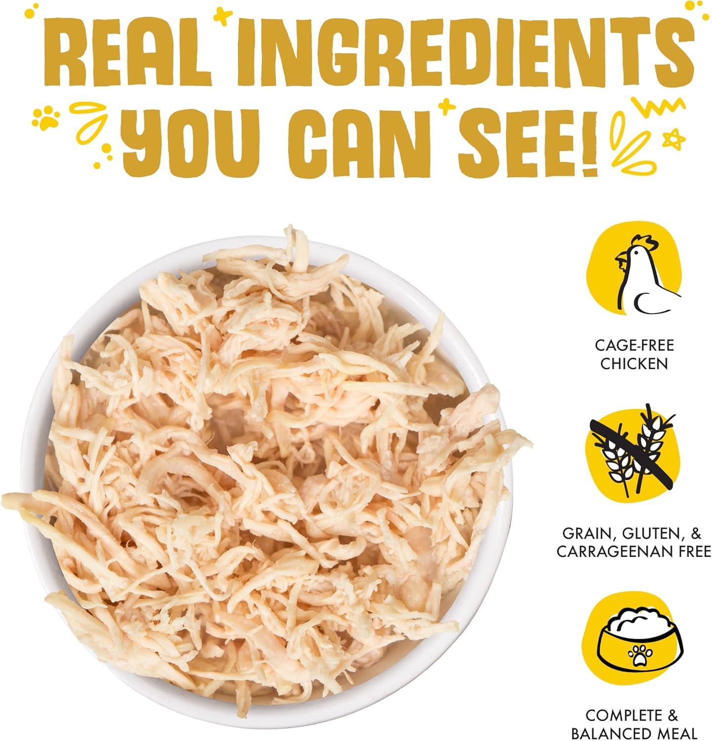 • Thinly shredded cage-free boneless, skinless chicken breast is the primary ingredient in these recipes - all in a delicious gravy even, picky cats can’t resist!