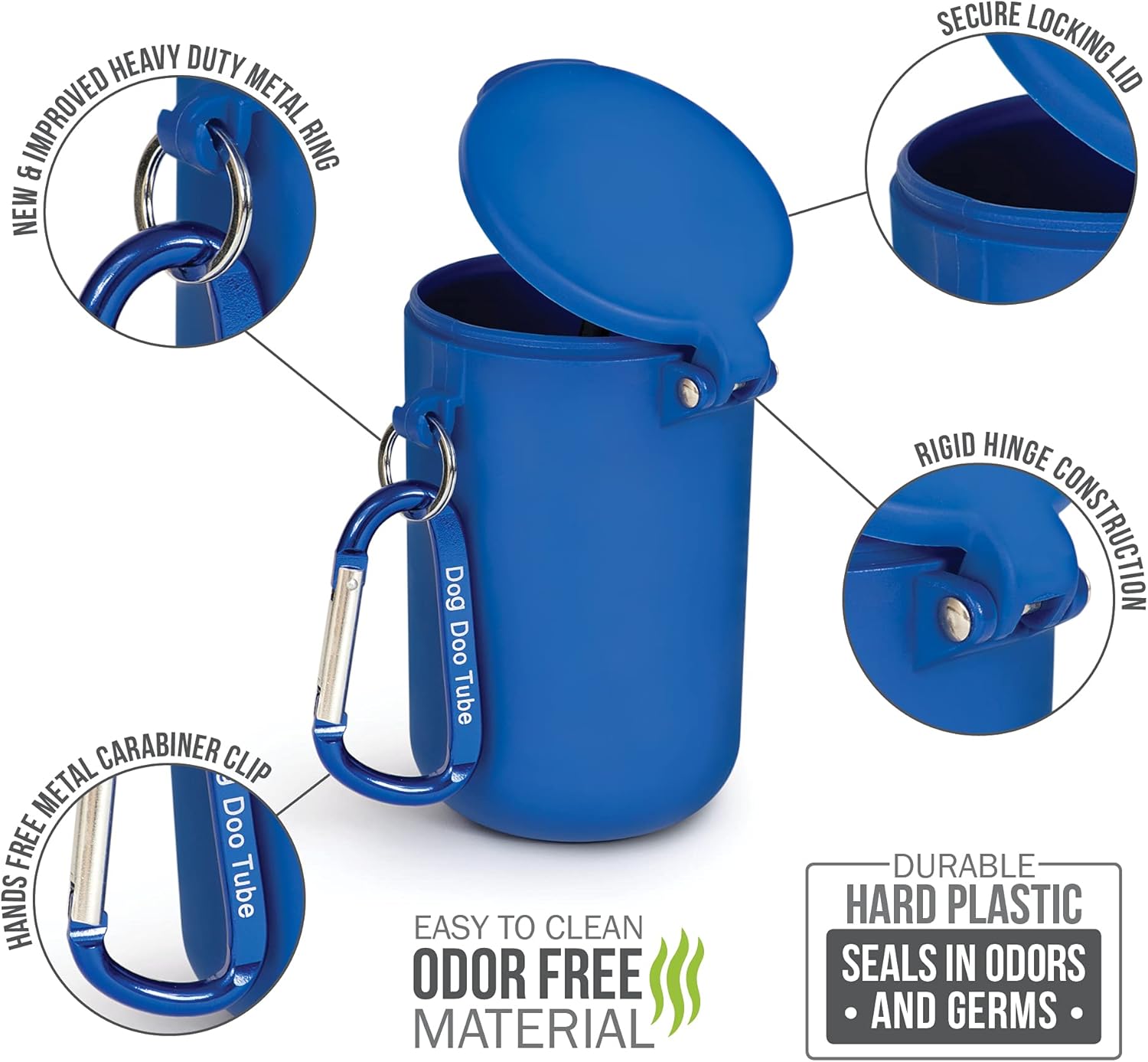 • LOCKS IN BAD ODORS: Dog Doo Tube Poop Bag Holder is designed for carrying the smelly little bags after your dog takes care of business. Simply drop the filled bag into the Dog Poop Holder; its tight fitting lid seals in the odor and germs.