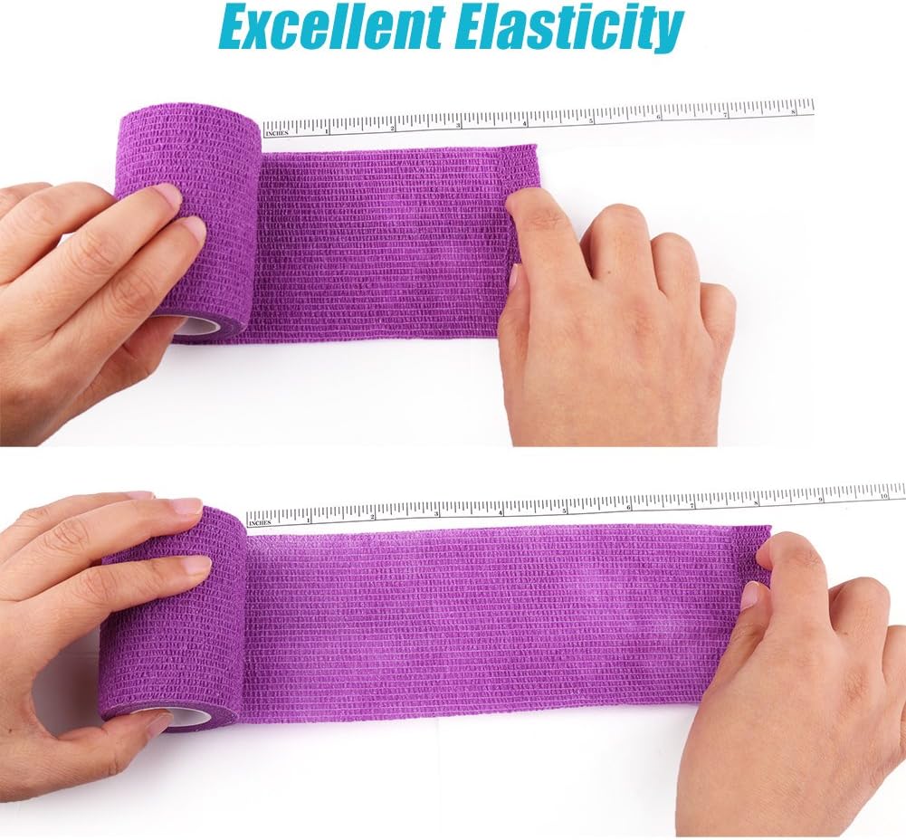 • COHESIVE TAPE: 3 inch x 5 yards self adhesive bandage tape adheres to itself, no clips or pins needed and will not stick to hair or skin; vet wrap tape will not loose by sweat or water