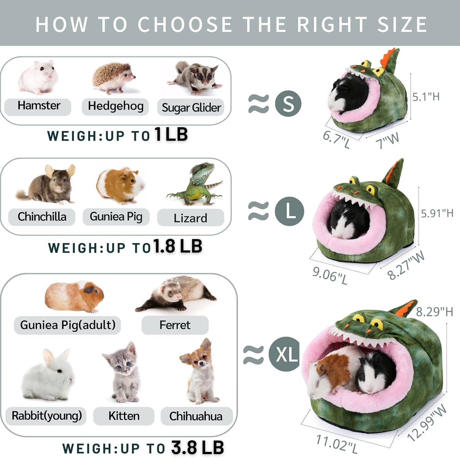 • 【SUPER SOFT】 short velvet + high precision PP cotton filling,super soft and cozy thick materials,sturdy in it's structure,stitching craftsmanship will keep this hideout looking great for years to come.it's very fit for guinea pig,chinchilla, hedgehog,rabbit,hamsters,breaded dragon,rat,ferret,squirrel and other similar sized small animal
