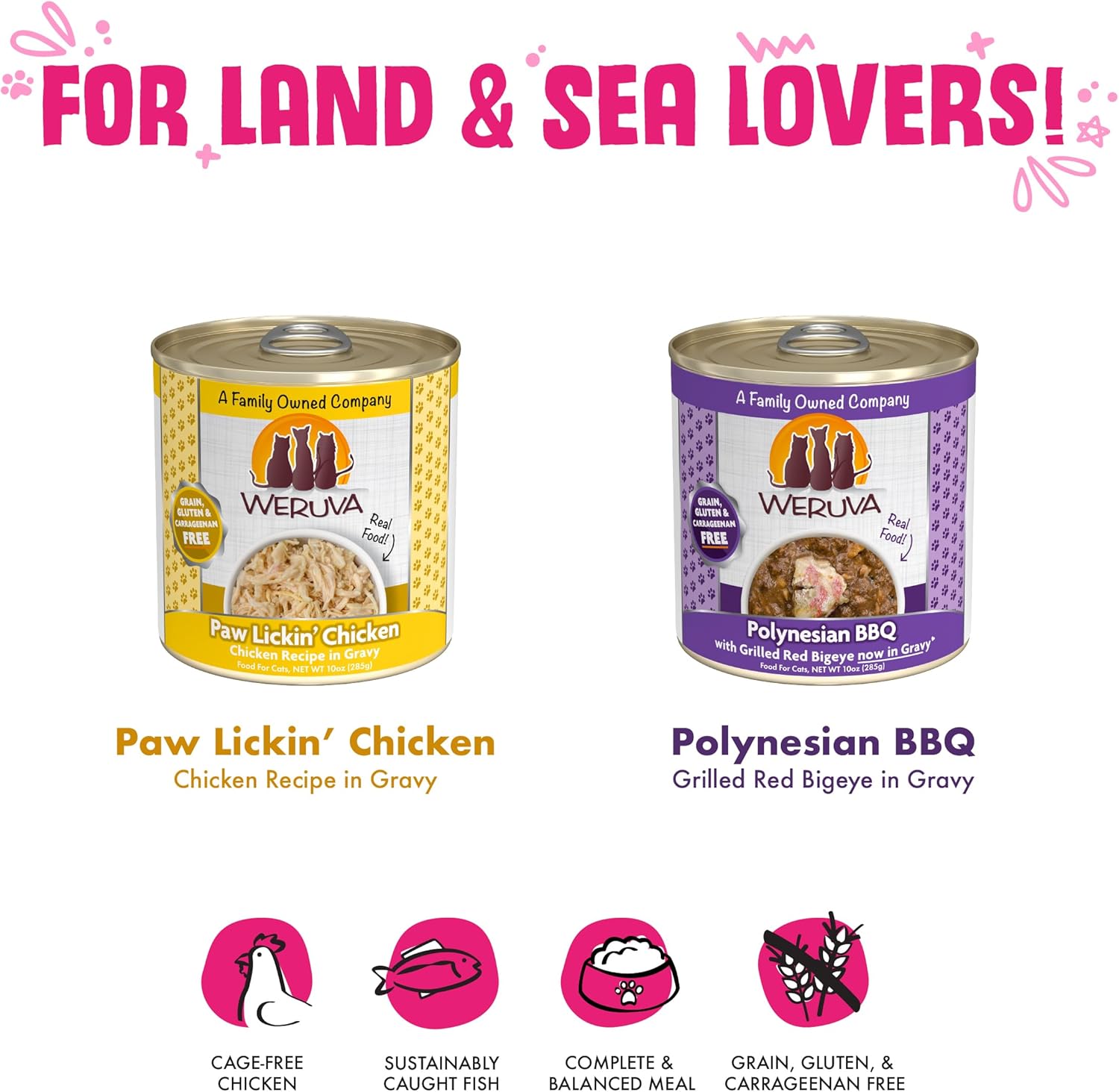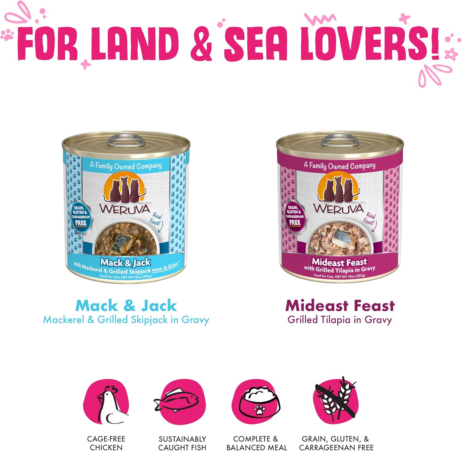 • Wowzer Meowzer Variety Pack (10oz cans, Pack of 12) Our 4 most popular poultry and seafood recipes. Weruva’s official variety pack for multi-cat homes!