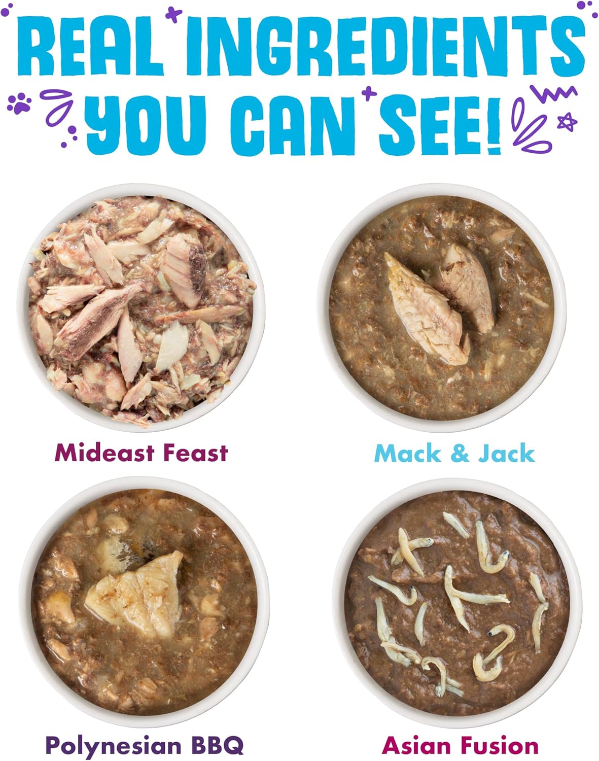 • Variety Pack includes 6 cans of each: Mideast Feast, Mack & Jack, Asian Fusion & Polynesian BBQ.