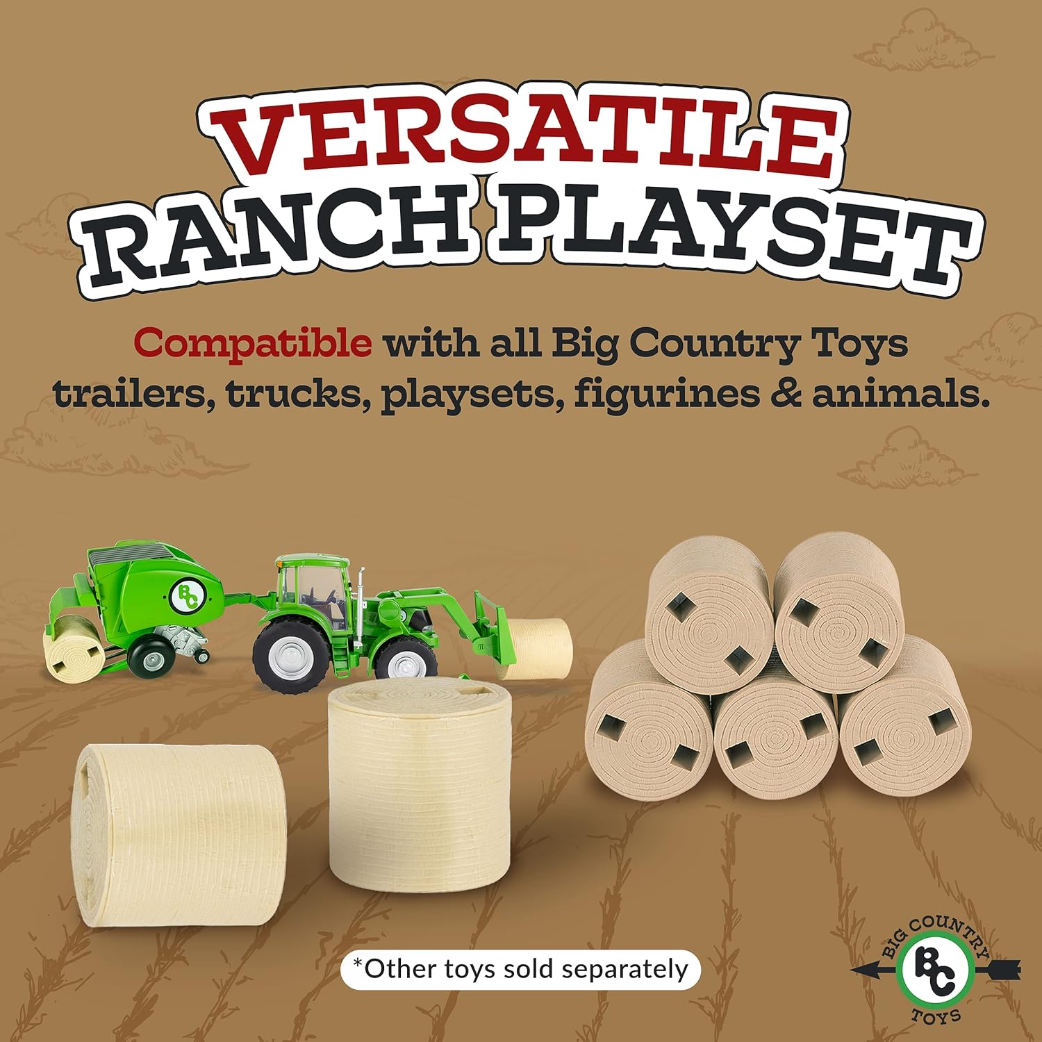 • About the Bale Set: Our 5-piece Ranch farm set small hay bales fit with Big Country Toys' full line of 1:20 scale plastic farm animals, farm and rodeo vehicles, figurines, and accessories! All the accessories can be used individually for a different playtime experience each time.