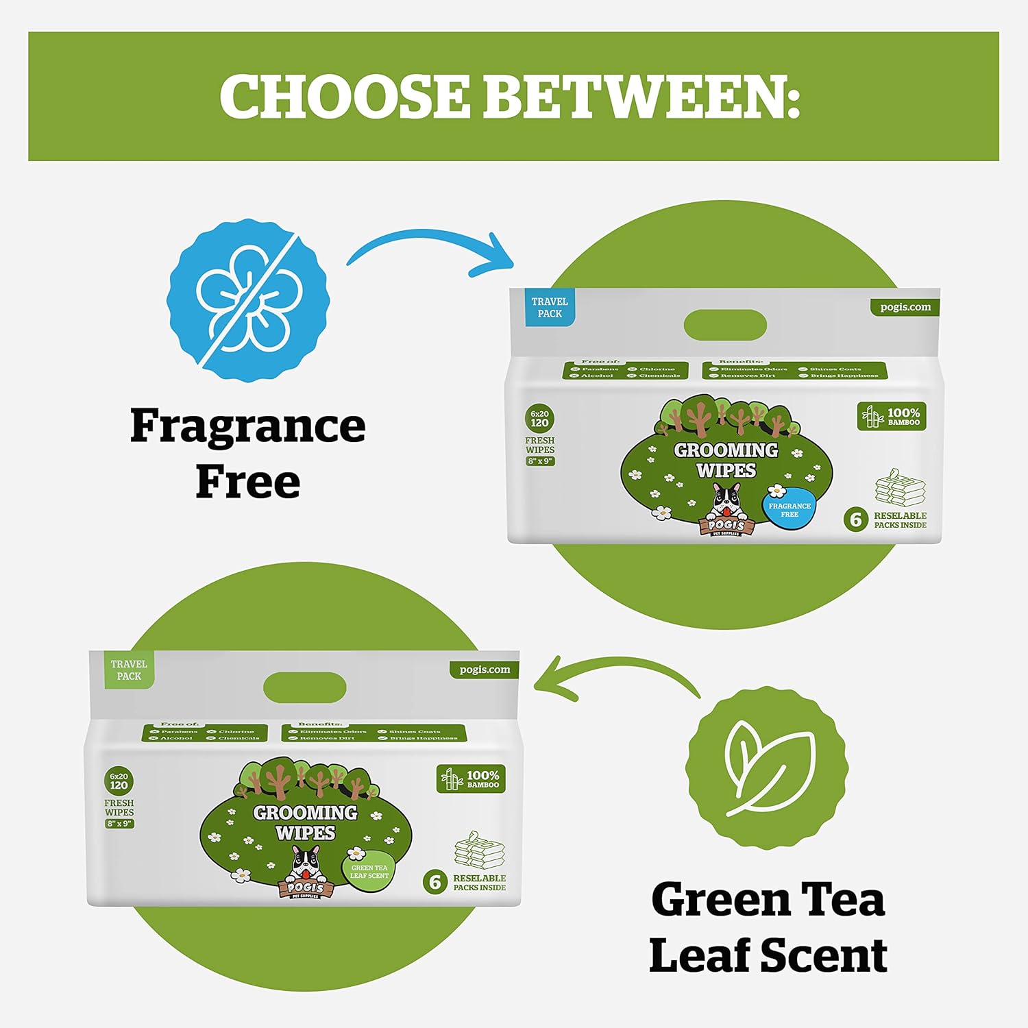 Pogi’s Dog Wipes Travel Packs – Hypoallergenic Pet Wipes for Paws, Body & Butt – Cleaning & Hydrating, Green Tea Scent, 120-Count