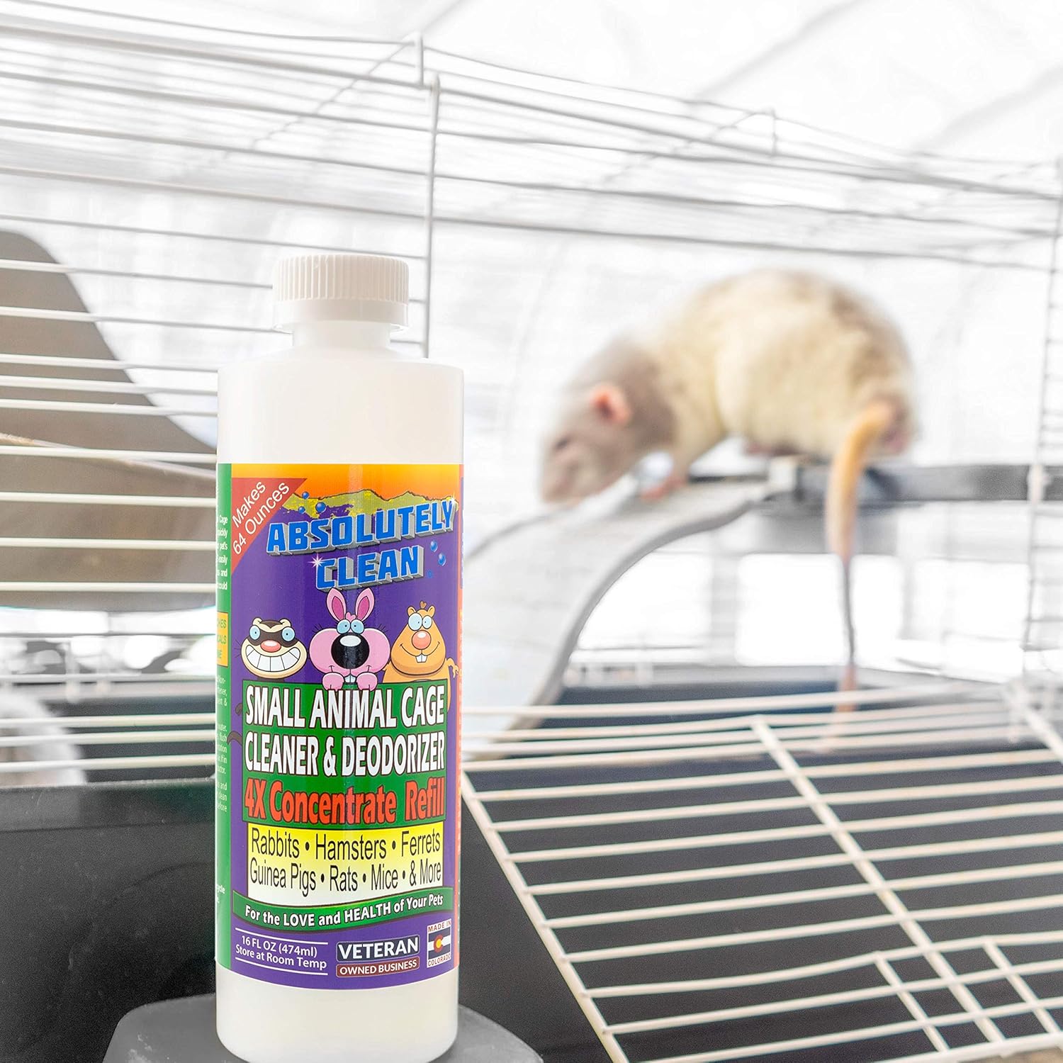 Amazing Small Animal Cage Cleaner - Just Spray/Wipe - Easily Removes Messes & Odors - Hamsters, Mice, Rats, Guinea Pigs, Ferrets - USA Made (16 oz Concentrate)