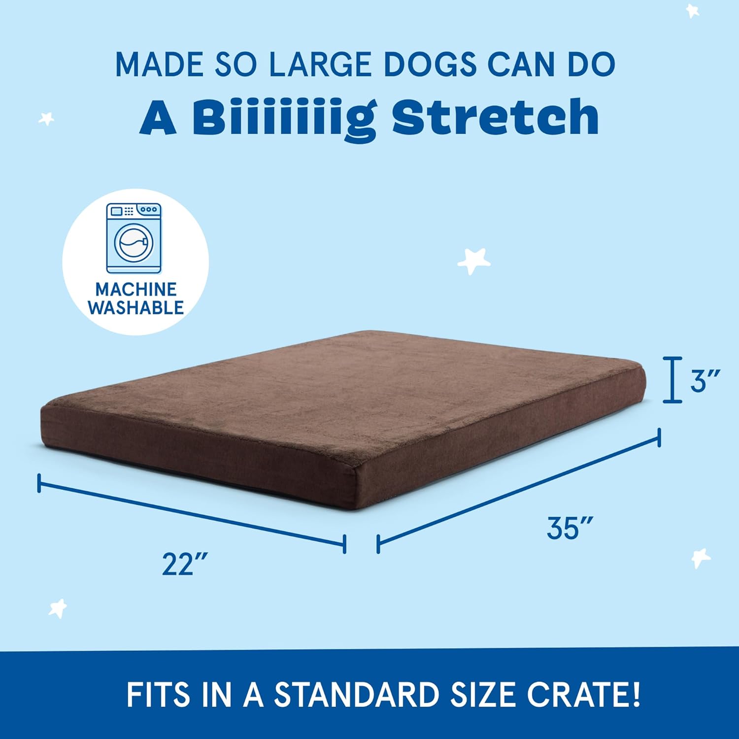 • Ideal for All Sizes: Available in small, medium, large and extra large sizes, this large dog bed at 35" x 22" x 3", suits a variety of breeds. Whether you need an dog bed for a crate or an water resistant dog bed, our orthopedic dog bed meets your requirements.