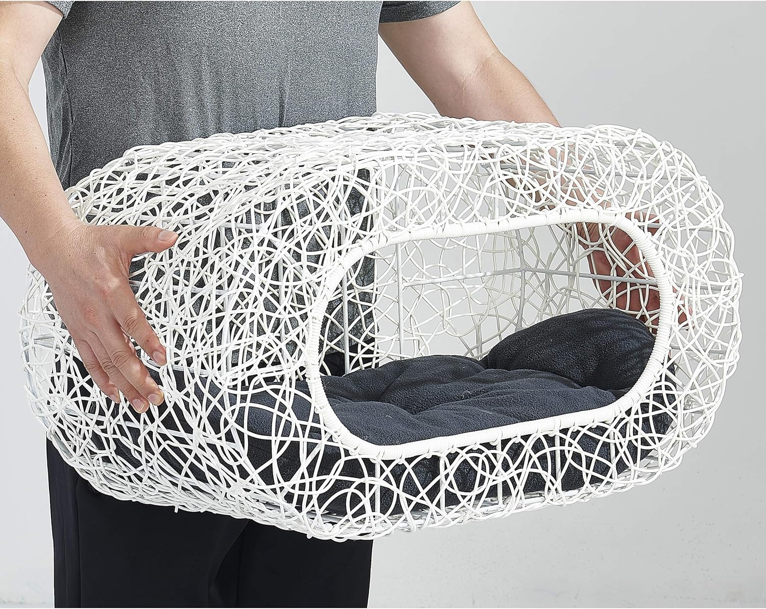 • INTERACTIVE PLAYHOUSE: Cat can easily jump in and out, from side or top. You can play with cats kittens inside bed house through open peekaboo holes with their fave toys; Turn the cat basket side way and see their joy from another angle