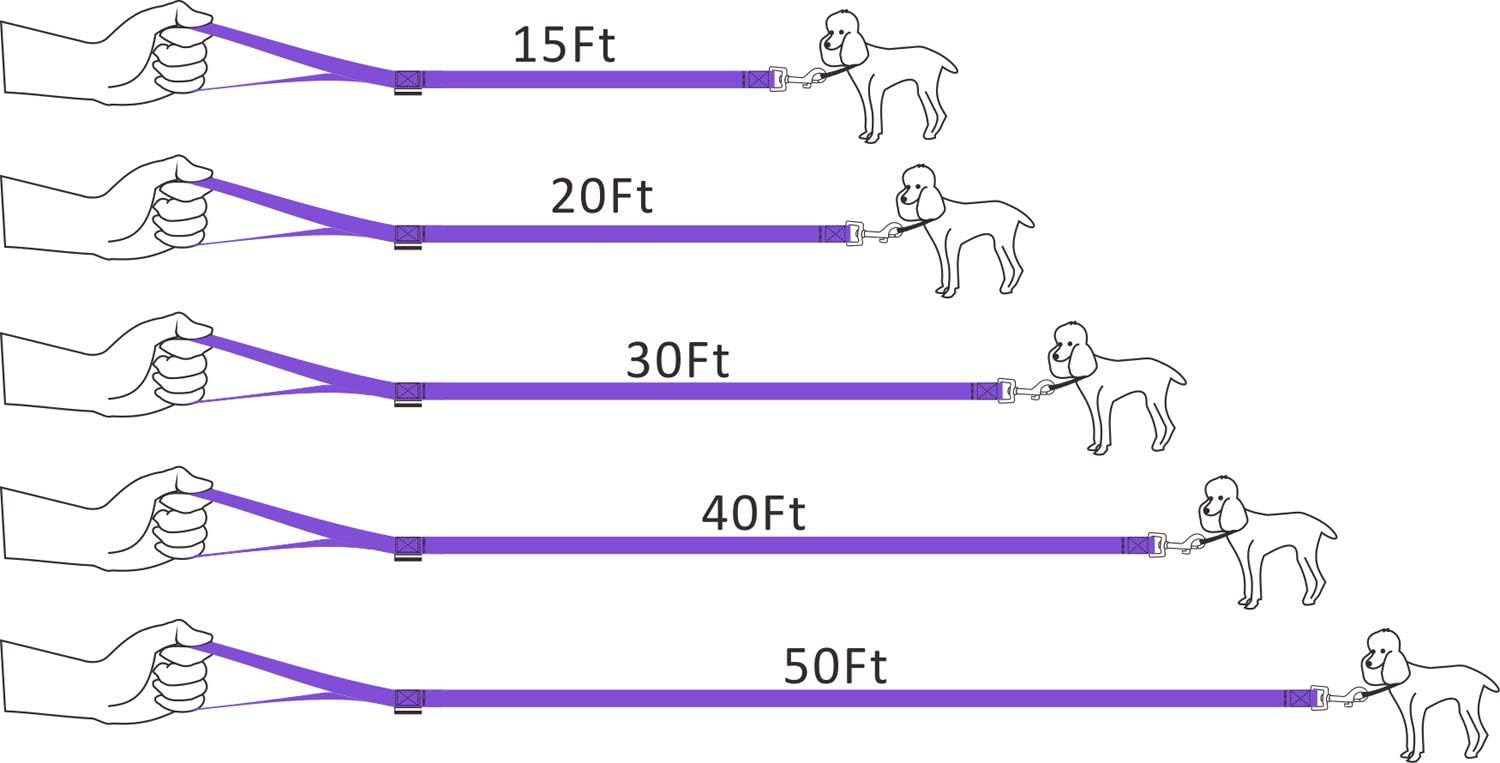 Dog/Puppy Obedience Recall Training Agility Lead - 15ft Long Training Leash,3/4in Wide - Great for Play, Camping, or Backyard (15Feet, Purple)