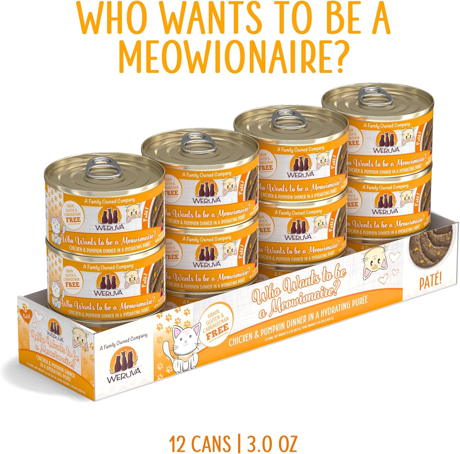 Weruva Wet Cat Food, Who Wants to be a Meowionaire with Chicken and Pumpkin Pate, 3oz Can, Pack of 12