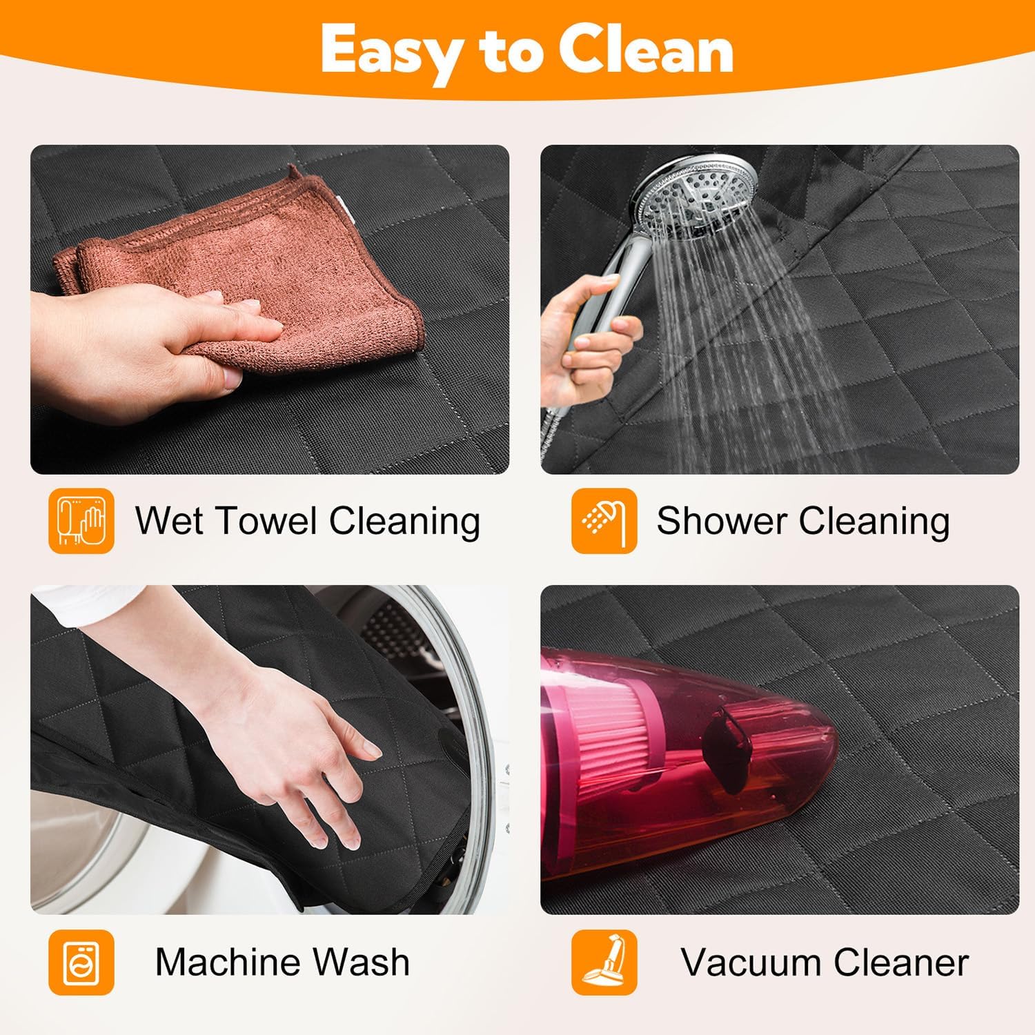 • ✅【SAFE & COMFORTABLE MATERIALS】Durable 600D Oxford fabric + A grade PP cotton + Heavy-Duty Waterproof + Anti-Slip PVC net to keep the car back seat pet protector in place even on leather seats and help your dogs stay in place cozily. All the 3 sides are filled with cotton, makes it soft and comfortable