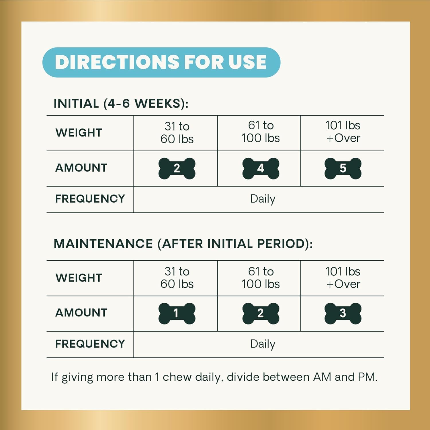 • JOINT SUPPORT & PROTECTION: Our strongest hip and joint supplement for dogs, with powerful levels of active ingredients that work together to help maintain mobility, lubricate joints, and support flexibility