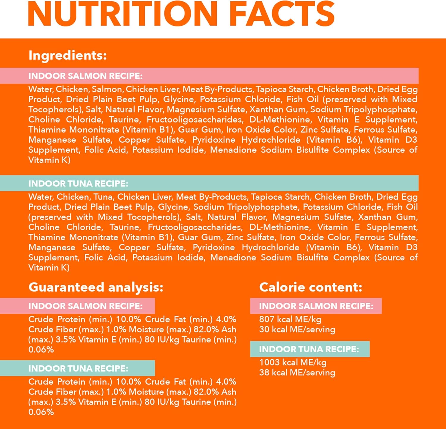 • Real Ingredients: This delicious adult wet cat food is made with real salmon or real tuna so your cat gets the protein they need