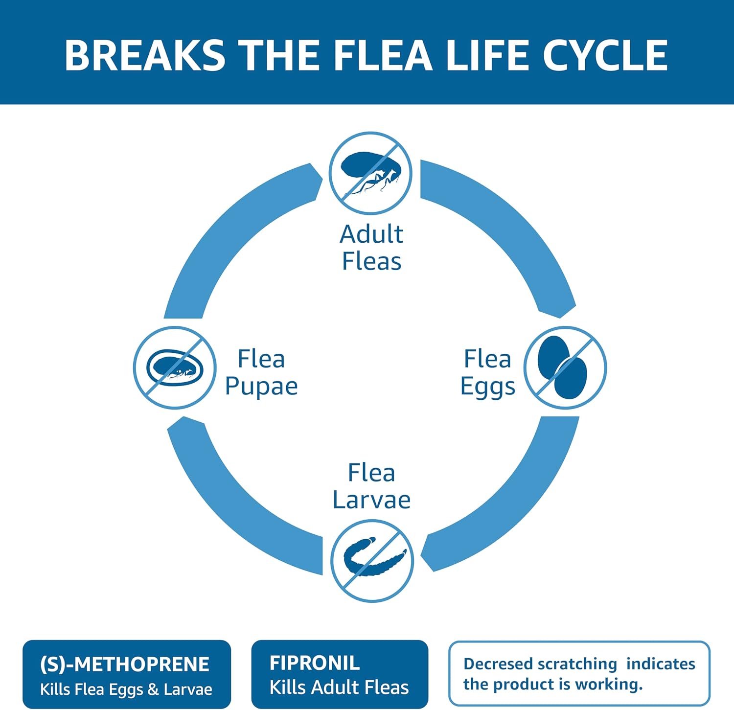 • Active ingredients Fipronil and (s)-methoprene prevent flea infestations by killing flea eggs, flea larvae, mosquitos, biting flies and chewing lice
