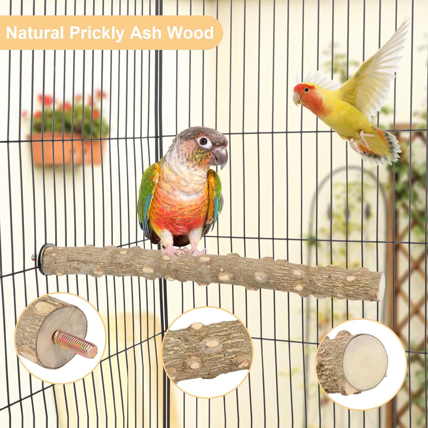 • 100% Natural Prickly Ash Wood – Safe Chewing & Zero Chemicals: Chemical-free bird perch made from dense hardwood, splinter-proof for parakeets, cockatiels, and parrots. No dyes or coatings – safer than plastic or rope perches.