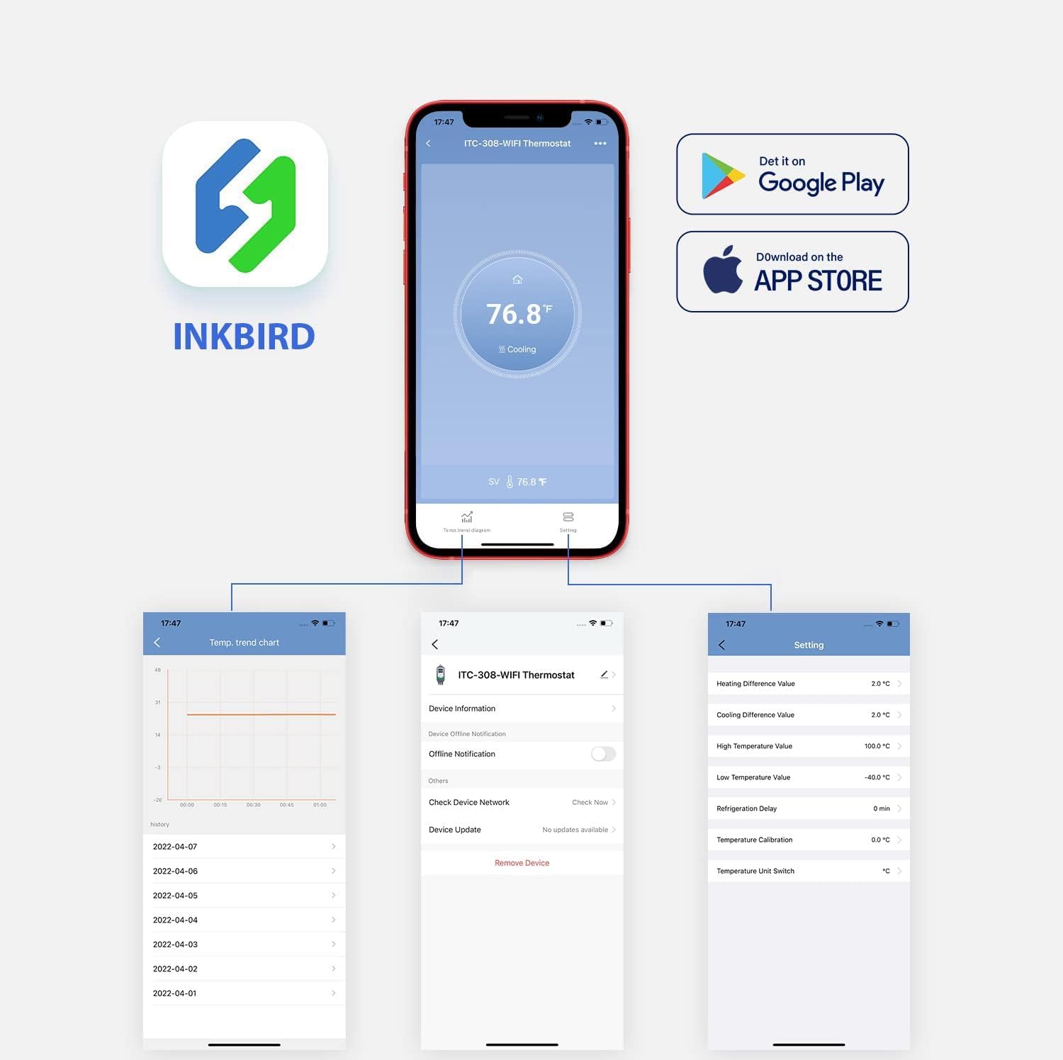 • WIFI smart controller: Supports both IOS and Android; WIFI connection supports 2.4 GHz Wi-Fi with INKBIRD APP to control the temperature remotely