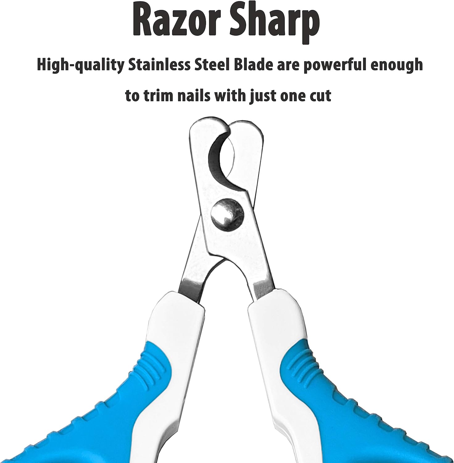 • Specially Semi-circular Angled Blade - The pet nail trimmers is professional designed with a semi-circular angled blade. You'll be able to see what you're doing and help you determine how much you need to trim without going near the sensitive spots and avoid a bloody mess even without a quick sensor.