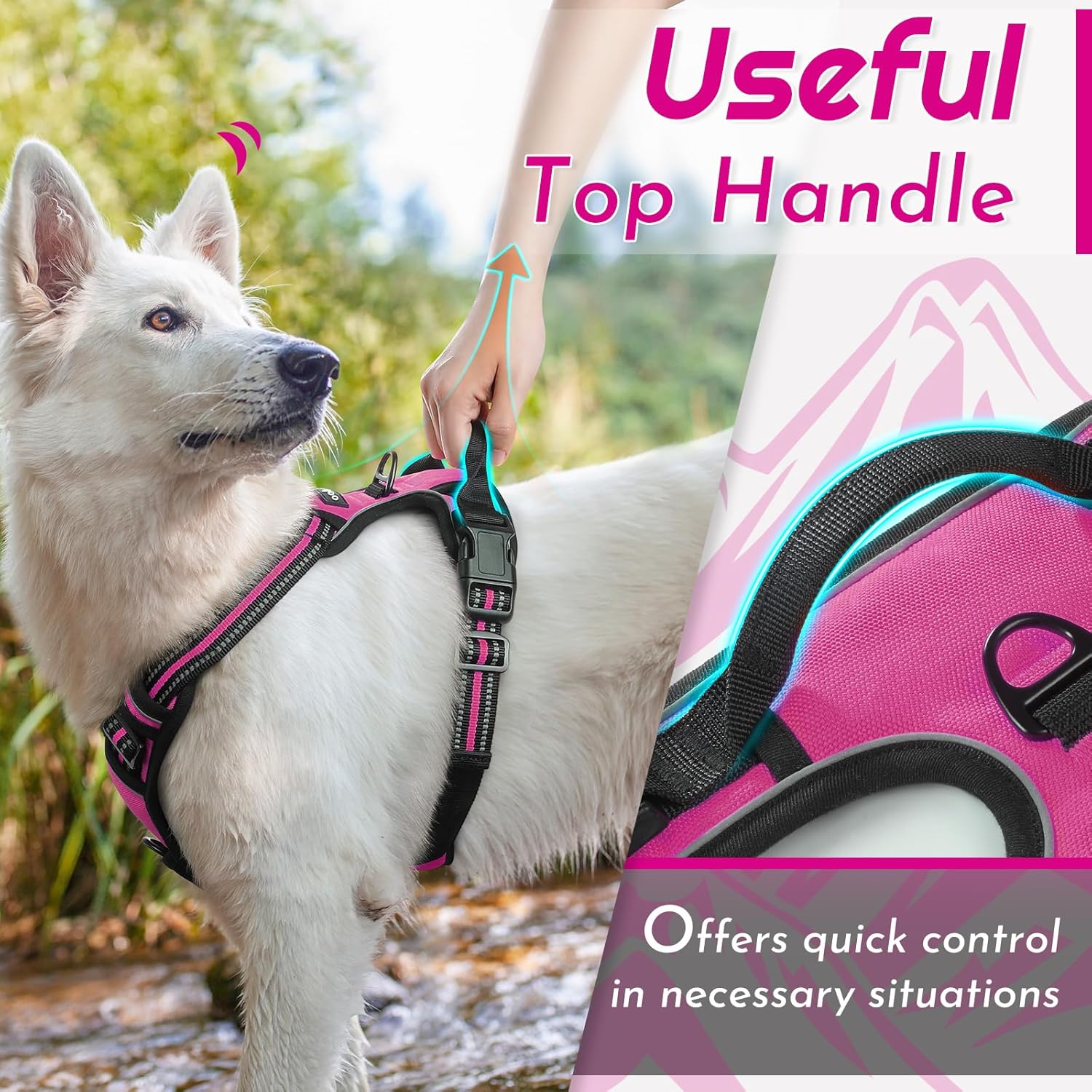 • No Pull & Better Control: Our no pull dog harness is typically designed with 2 sturdy metal leash rings for leash attachment. If you use the front hook on the chest, it will reduce the pulling, a perfect choice for dog training. The back leash ring is great for casual walks, jogging, hiking, etc.