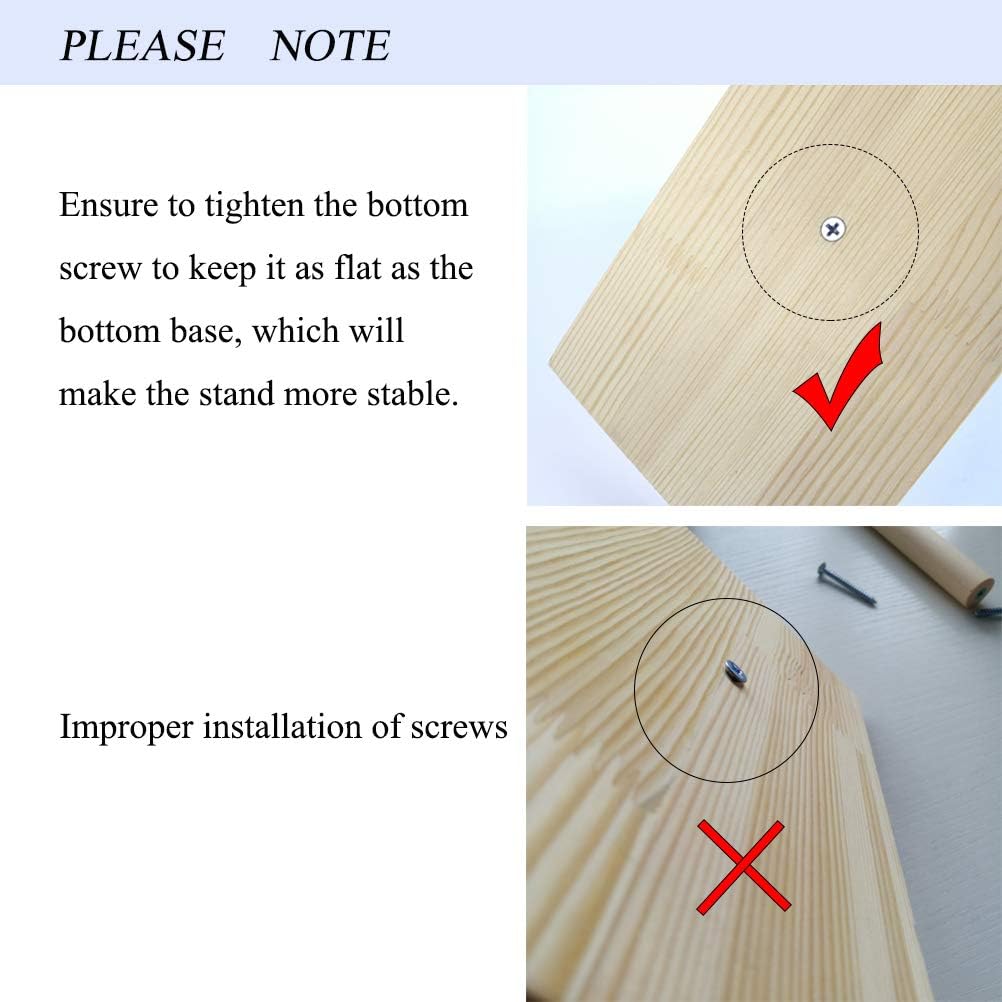 • KINDLY TIPS: 1.Wooden products in transit may lead to small amount of wood chips, it is recommended to wipe before installation. 2.Ensure to tighten the bottom screw to keep it as flat as the bottom base, which will make the stand more stable.