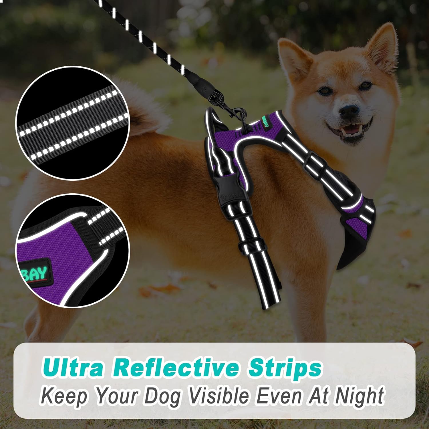 BARKBAY No Pull Dog Harness Large Step in Reflective Dog Harness with Front Clip and Easy Control Handle for Walking Training Running(Purple,XL)