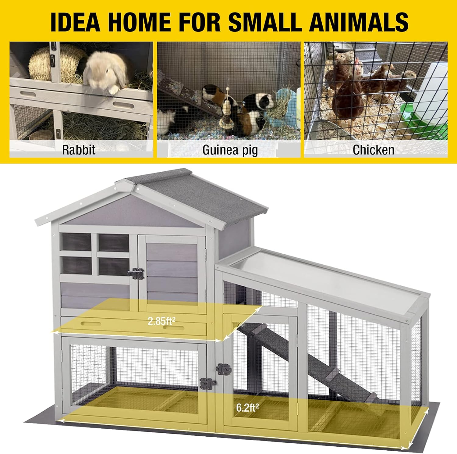 • 【 COST-EFFECTIVE】Bunny hutch perfect for 2-3 bunnys,chickens and other small animals,no weight limit.Improved latches create perfect alignment and greater security.