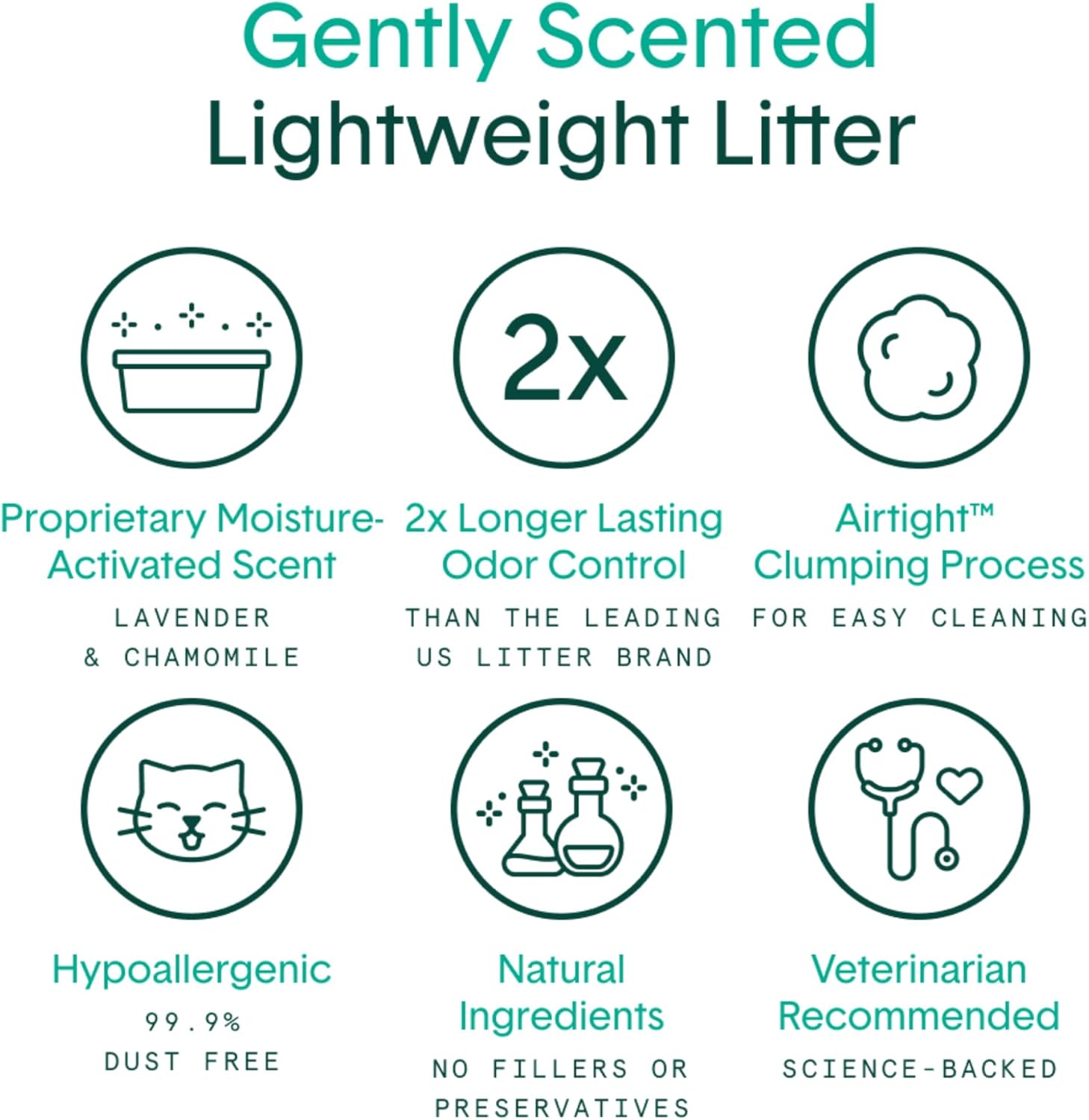• EASY TO POUR & EASY TO CLEAN: 60% lighter than clay litters, making it easy to lift, pour and store. Clumps form instantly on the top of the litter box, rather than sticking to the sides or bottom. Non-stick for easy scooping & cleaning throughout the month.