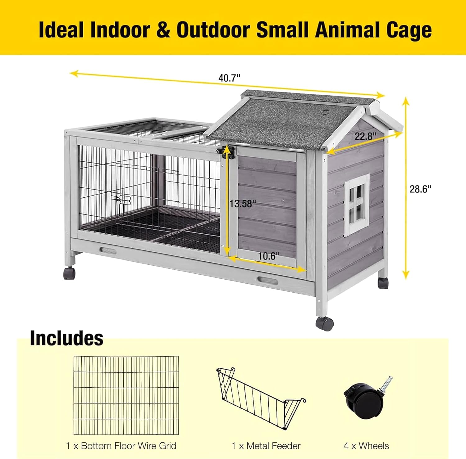• Movable Wooden Hutch: Four Casters to move the bunny hutch easily and quickly. Two of them are brakes to stay well and safe