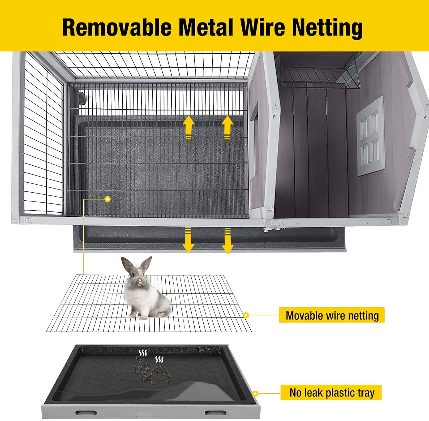 • Bottom Wire Floor: Removable metal wire netting above the tray, bunny will not standing on their poop. Super easy to clean your rabbit cage