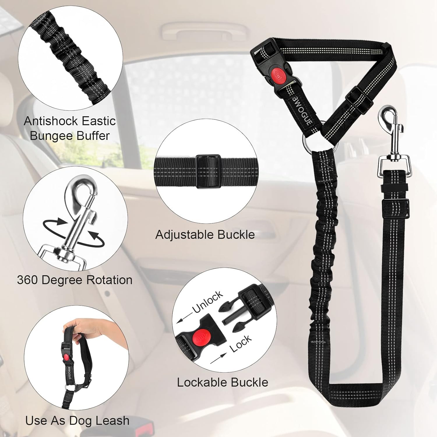 BWOGUE Pet Dog Cat Seat Belts, Car Headrest Restraint Adjustable Safety Leads Vehicle Seatbelt Harness (1 Pack)